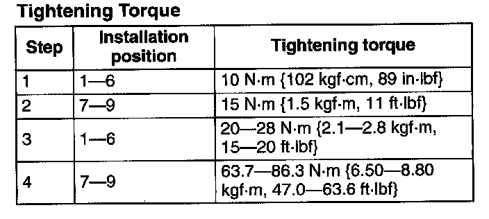 Tightening torque 8.5-11.5 Nm (87-117 kgf-cm, 76-101 in-lbf)