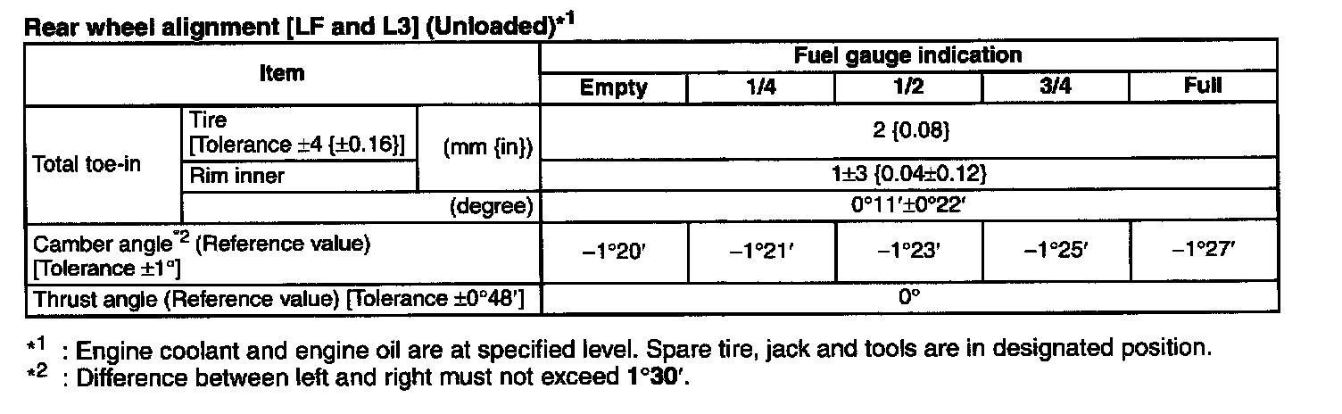 Rear wheel alignment [L3 WITH TC] Unloaded)*1