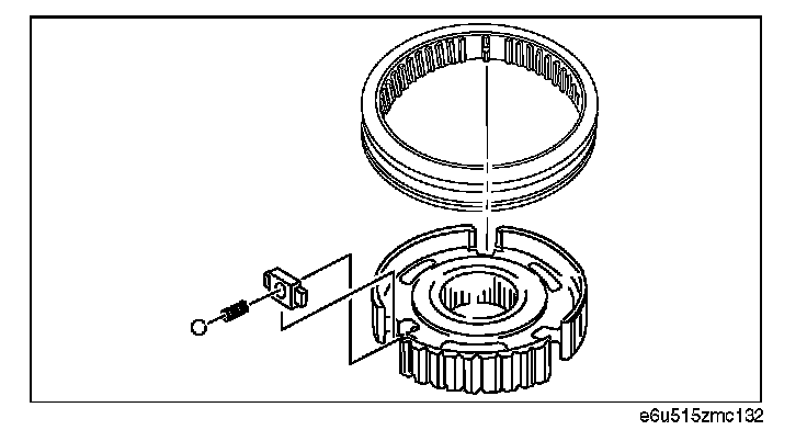 2. Assemble the synchronizer key, spring, steel ball, and clutch hub sleeve as shown in the figure.