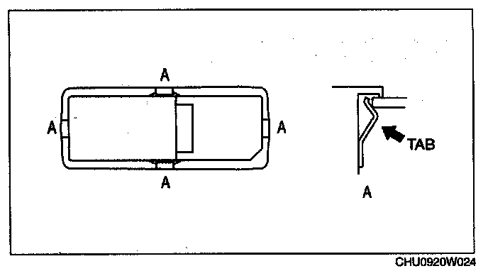 1. Remove the car-navigation control switch while pressing tabs A as shown in the figure.