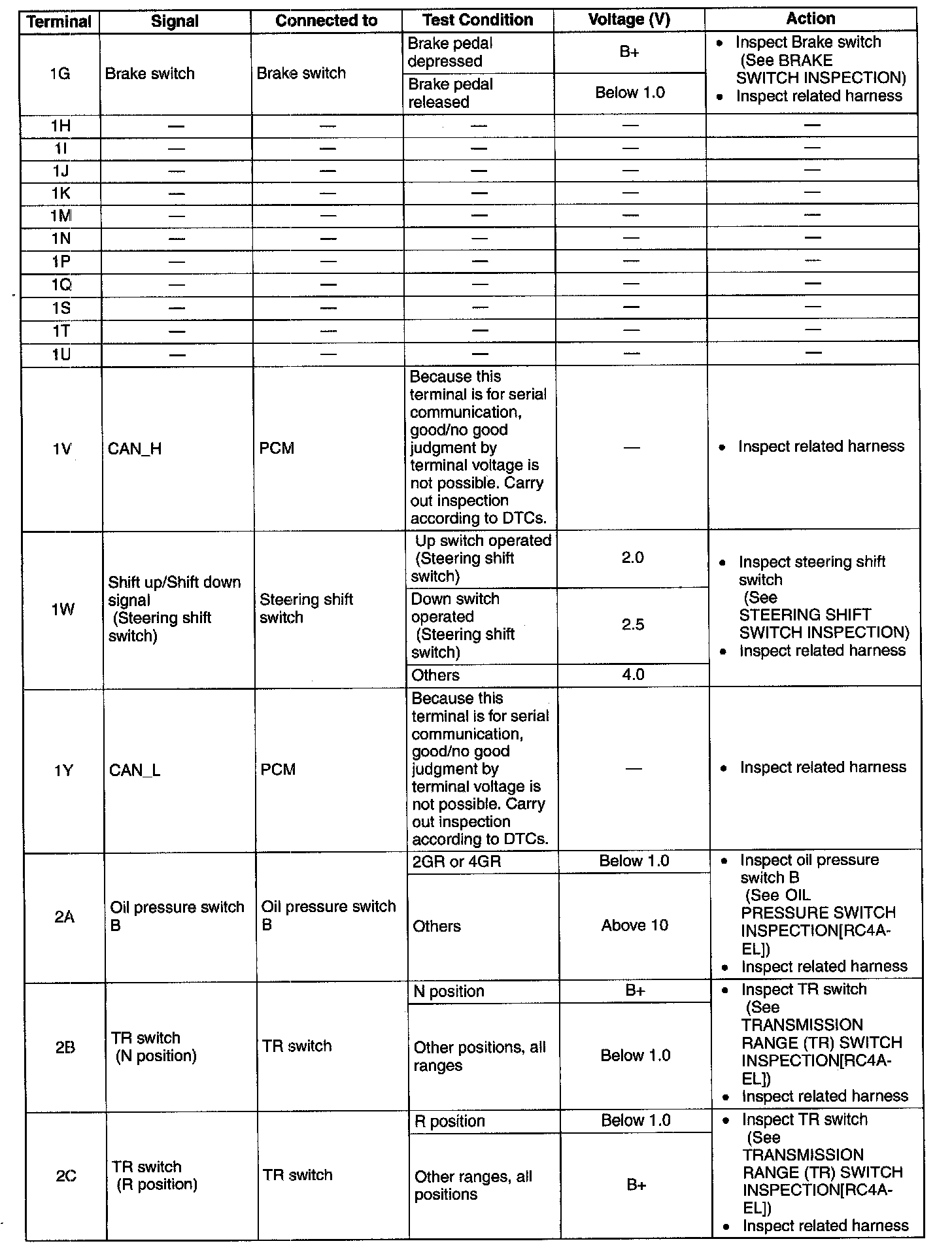 TCM INSPECTION [RC4A-EL]Terminal Voltage Table (Reference)
