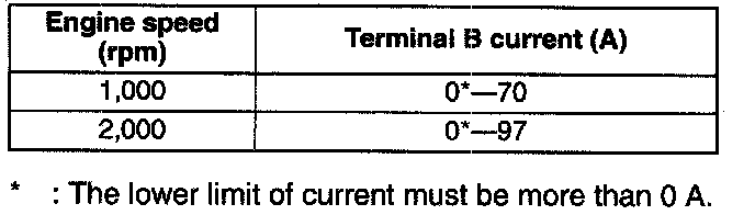 Current possible for power generation (differs according to load) [Conditions] ambient temperature 20 °C (68 °F), voltage 13.O - 15.0 V, engine hot