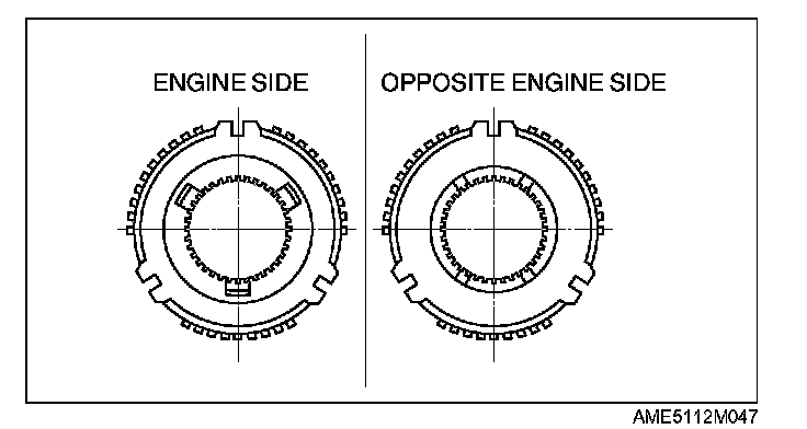 1) Install a new 3rd/4th clutch hub in the direction as shown in the figure.