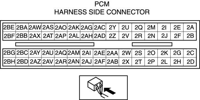 - Throttle body terminal A and PCM terminal 2AK*1, 2M*2