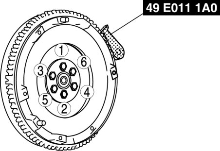 lock bolts or dual-mass flywheel lock bolts in a crisscross pattern.