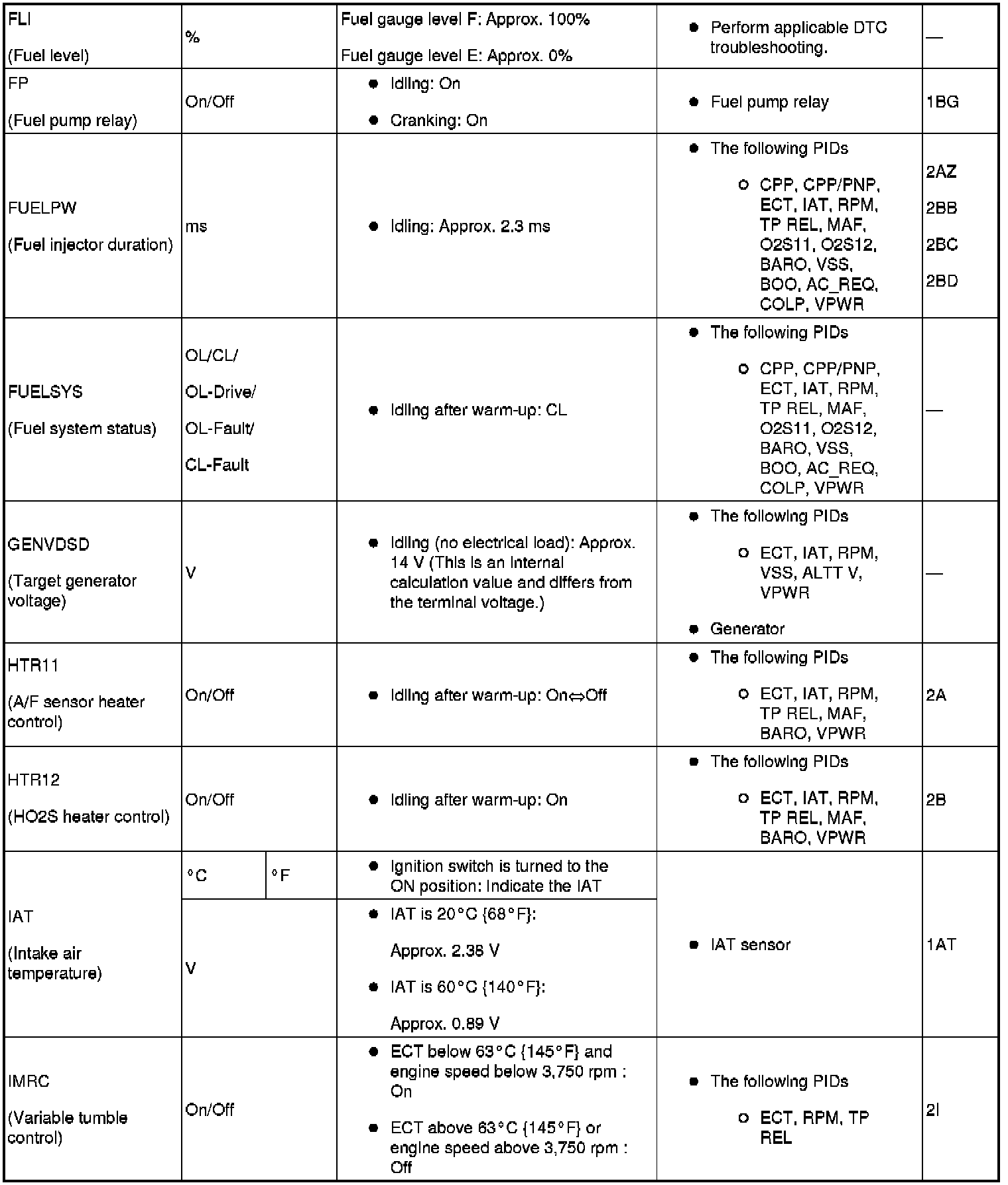 PID/DATA Monitor Table (Part 1):