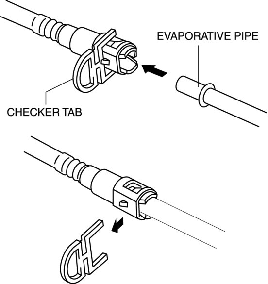 - A checker tab is integrated with the quick release connector for new evaporative hoses and evaporative hoses. Remove the checker tab from the quick release connector after the connector is completely engaged with the evaporative pipe.