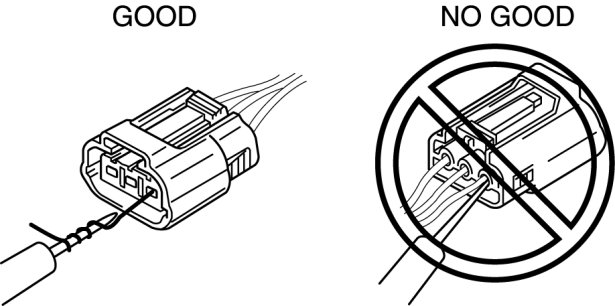 - To prevent damage to the terminal, wrap a thin wire around the tester probe before inserting into terminal.