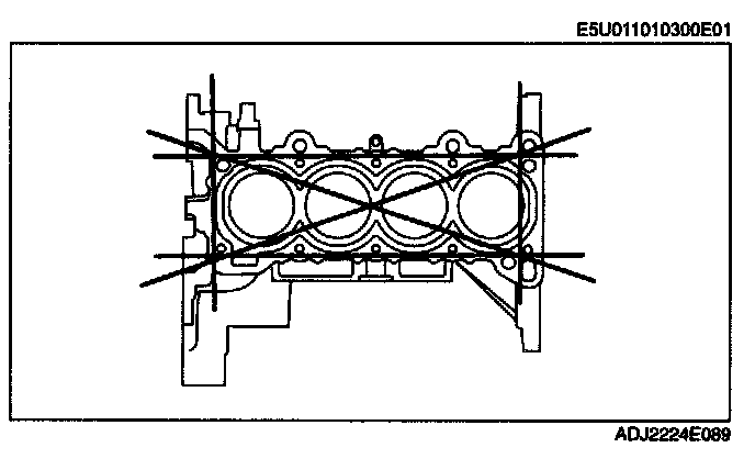 Measure the distortion of the cylinder block top surface in six directions as indicated in the figure.
