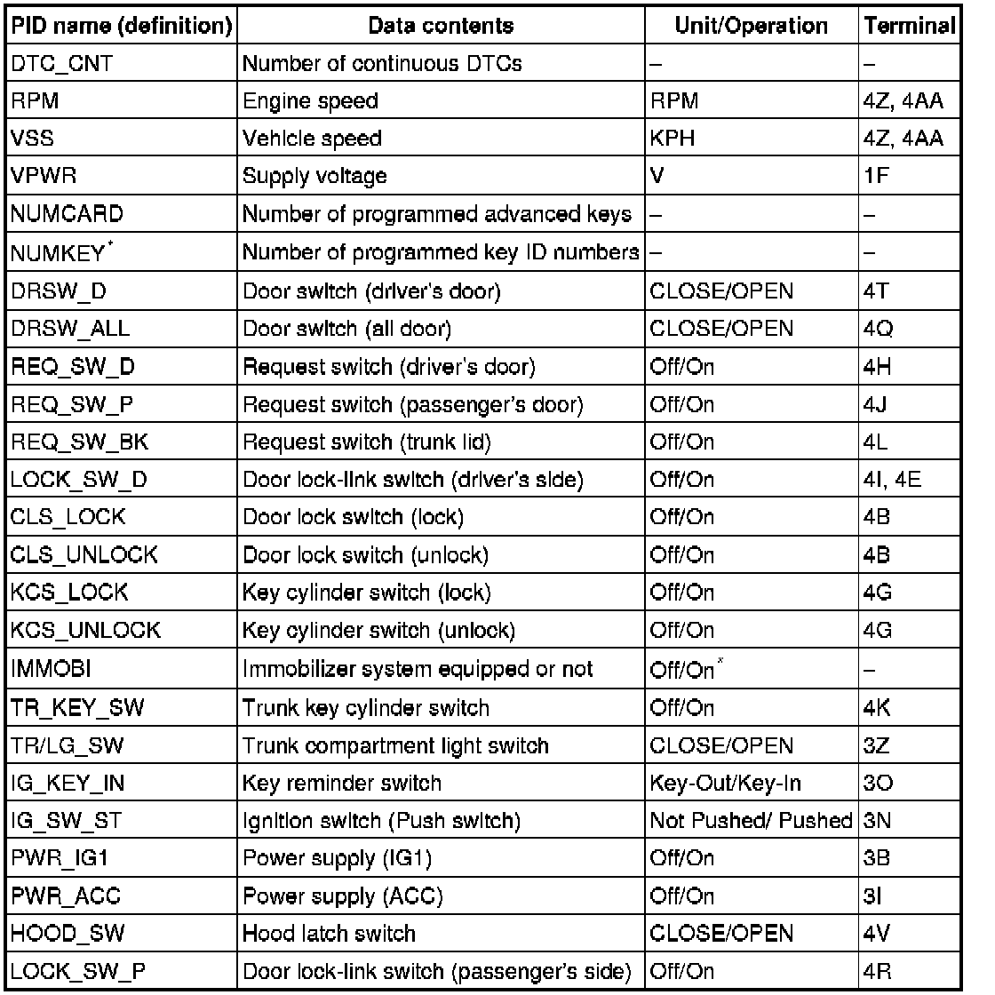 PID/DATA MONITOR INSPECTION [ADVANCED KEYLESS AND START SYSTEM]