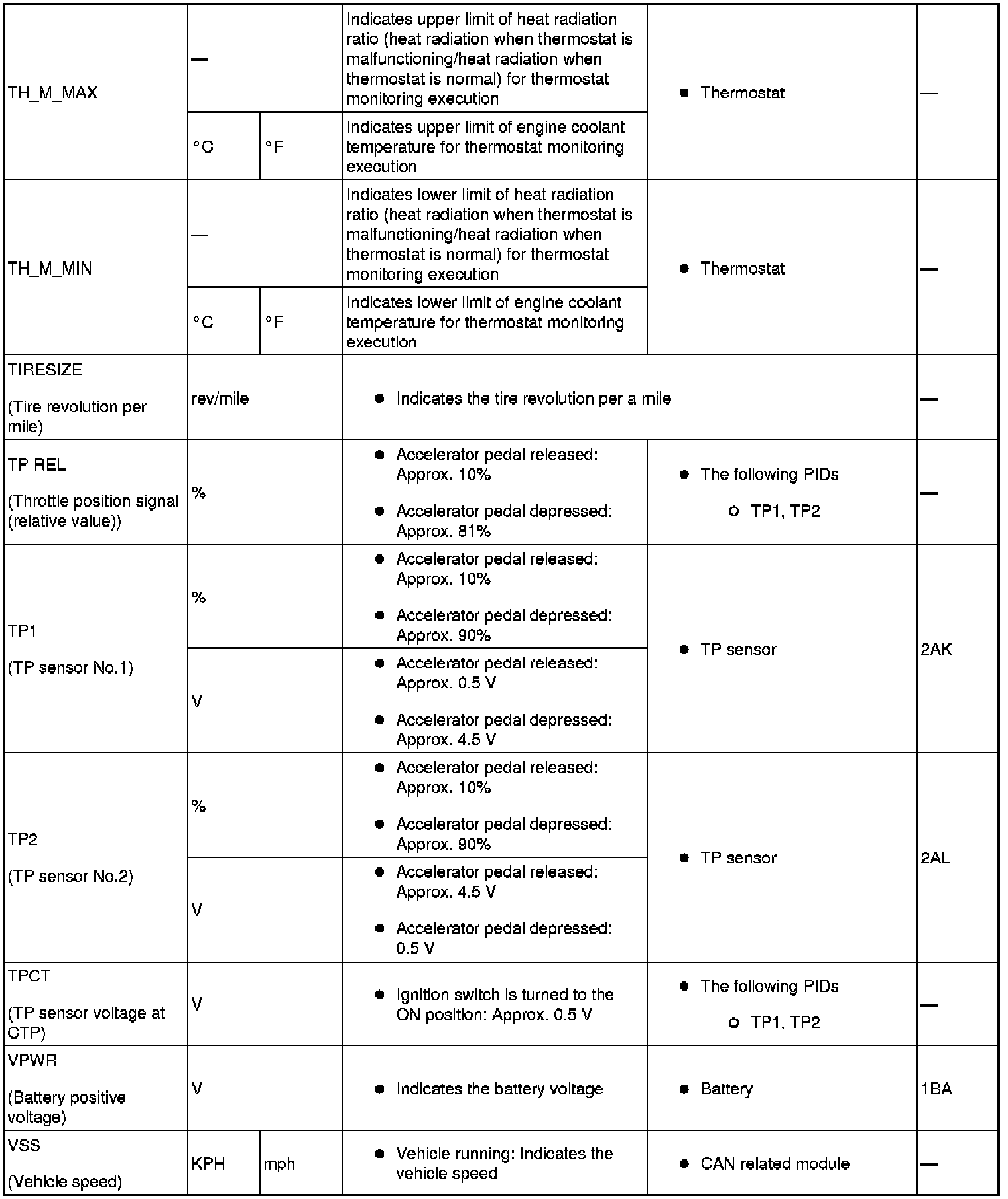 PID/DATA Monitor Table (Part 2):
