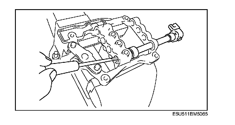 Insert the shift rod while pressing the detent ball with a flathead screwdriver as shown in the figure.