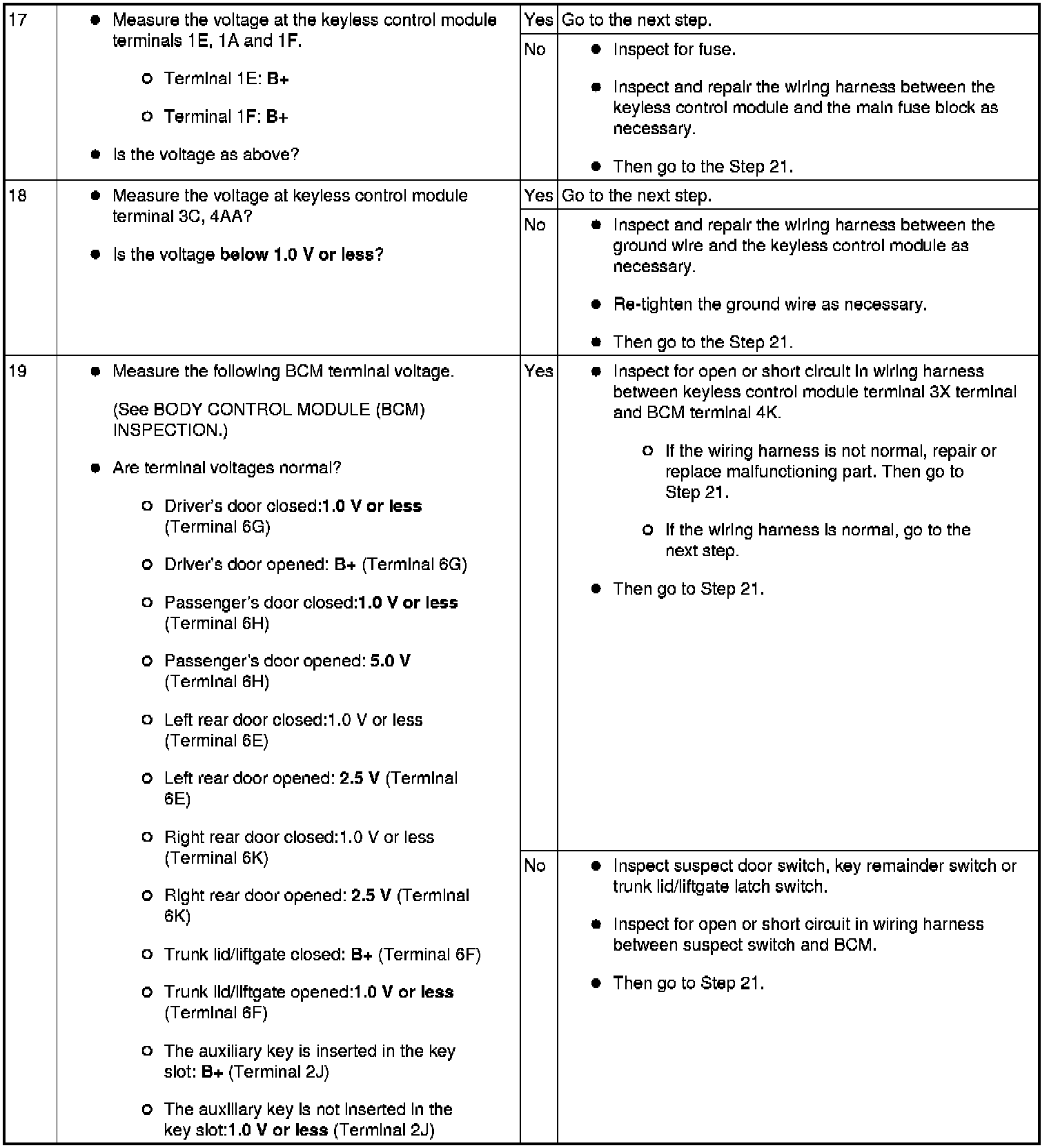 No.1 Door Cannot Be Locked/Unlocked By Advanced Key - Advanced Keyless Entry And Push Button Start System