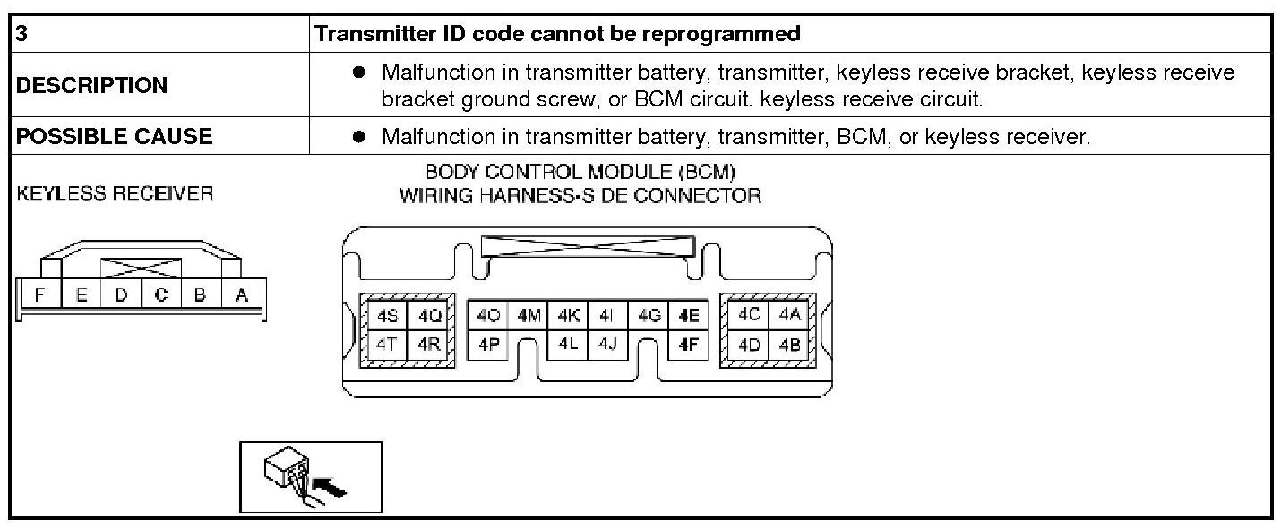 No.3 Transmitter ID Code Cannot Be Reprogrammed - Keyless Entry System