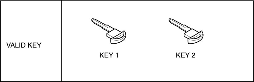 - The "Valid key" or "Valid advanced key" referred to in this information indicates the key that can start the engine.