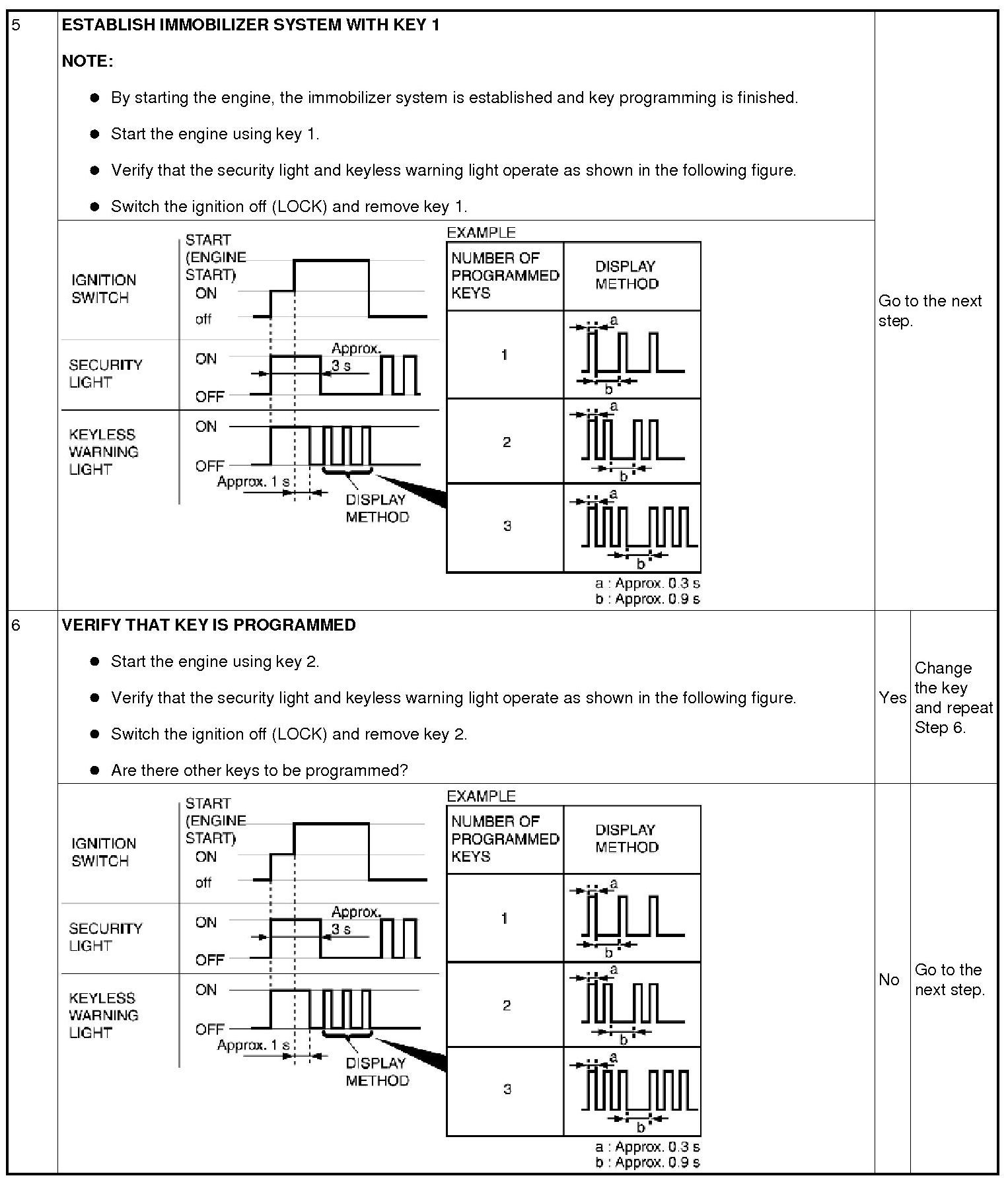 Immobilizer System-Related Parts Service and Programming Procedure Table