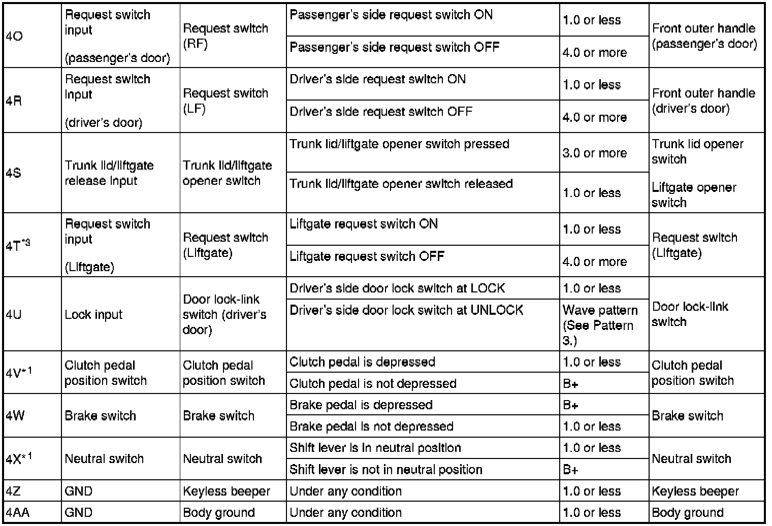 - Door lock-link switch (driver's door): 4U (+) and body ground (-)