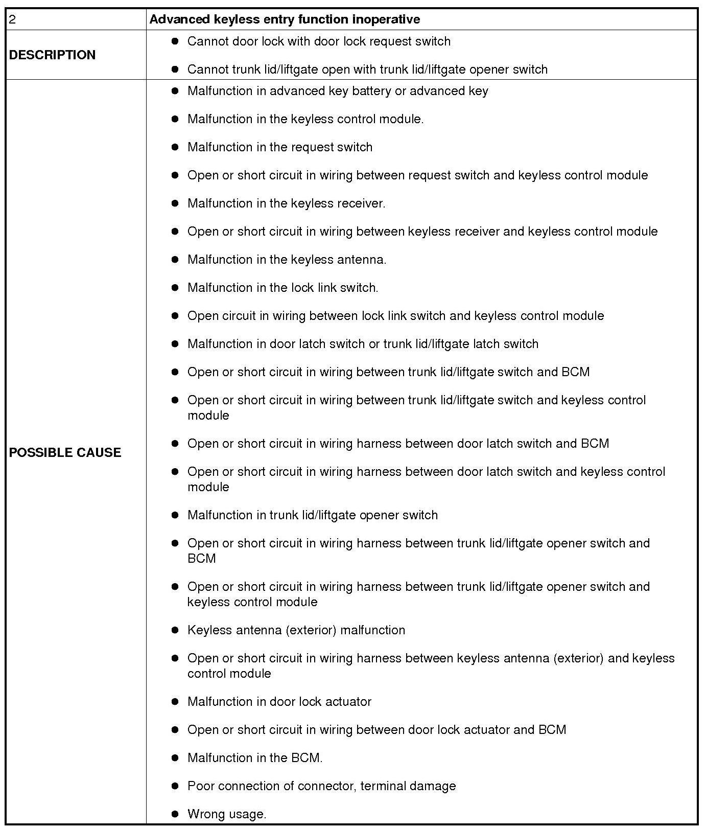 No.2 Advanced Keyless Entry Function Inoperative - Advanced Keyless Entry And Push Button Start System