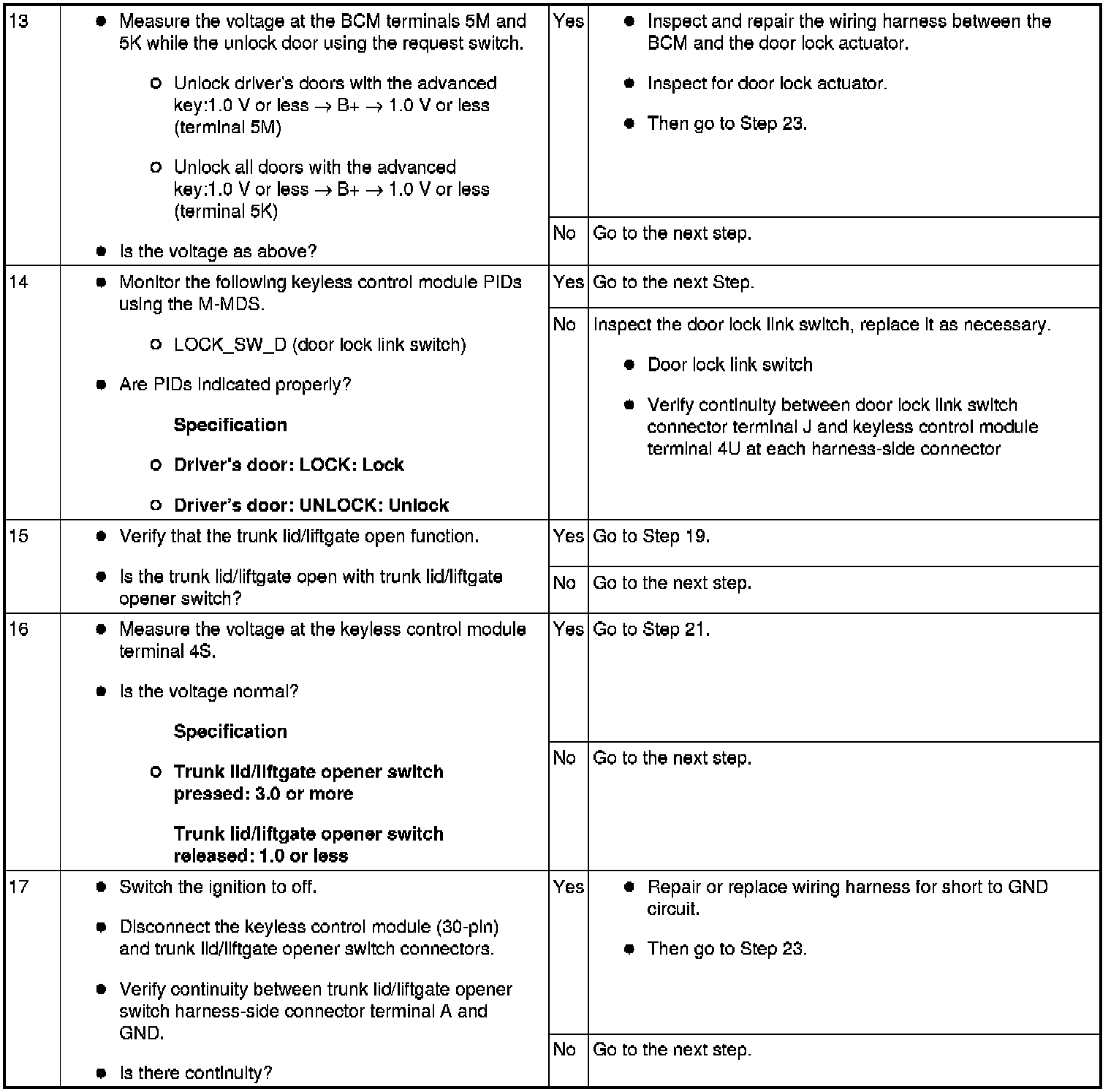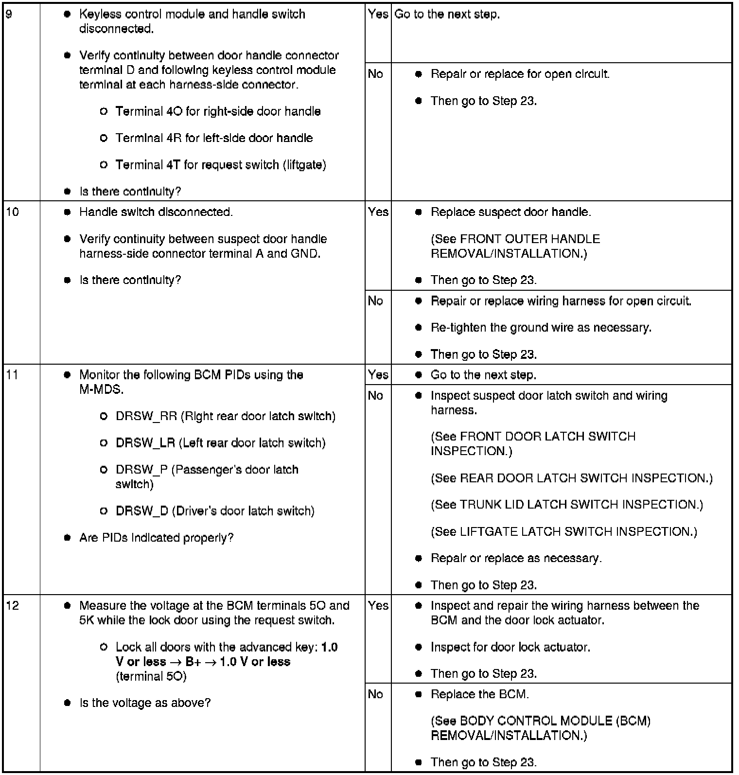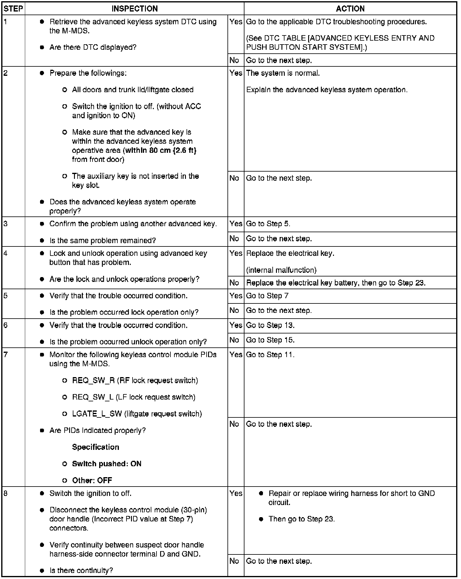 Home >> Mazda >> 2010 >> 3 L4-2.0L >> Repair and Diagnosis >> Body and Frame >> Locks >> Keyless Entry >> Testing and Inspection >> Symptom Related Diagnostic Procedures >> Advanced Keyless Entry And Push Button Start System >> No.2 Advanced Keyless Entry Function Inoperative - Advanced Keyless Entry And Push Button Start System