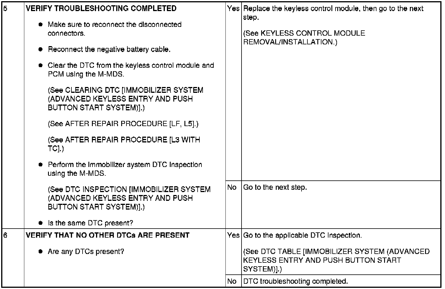 Home >> Mazda >> 2010 >> 3 L4-2.0L >> Repair and Diagnosis >> Body and Frame >> Locks >> Keyless Entry >> Testing and Inspection >> Symptom Related Diagnostic Procedures >> Advanced Keyless Entry And Push Button Start System >> Security Light: Not Illuminated, DTC B10E6:11/- Immobilizer System (Advanced Keyless Entry And Push Button Start System)