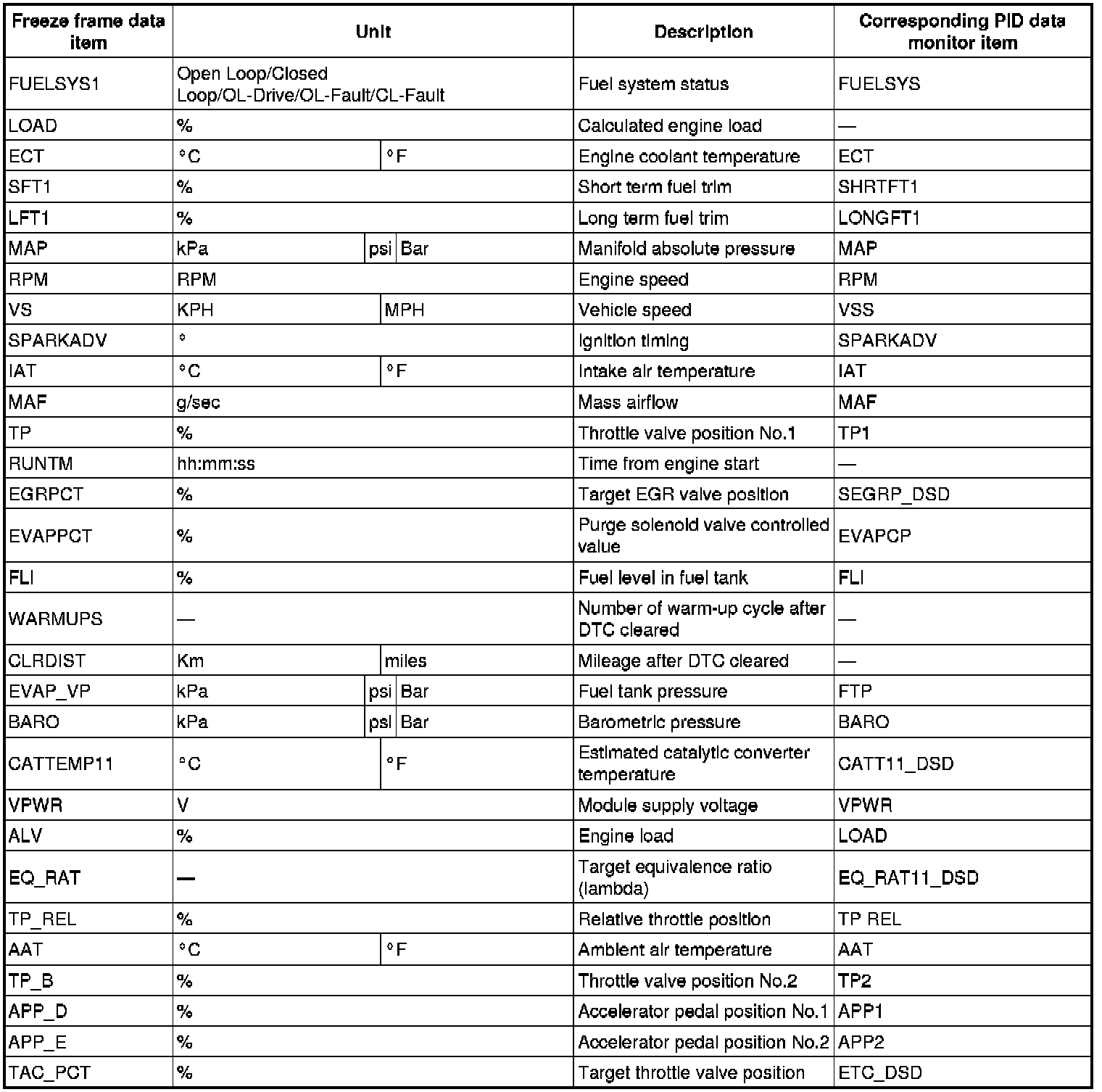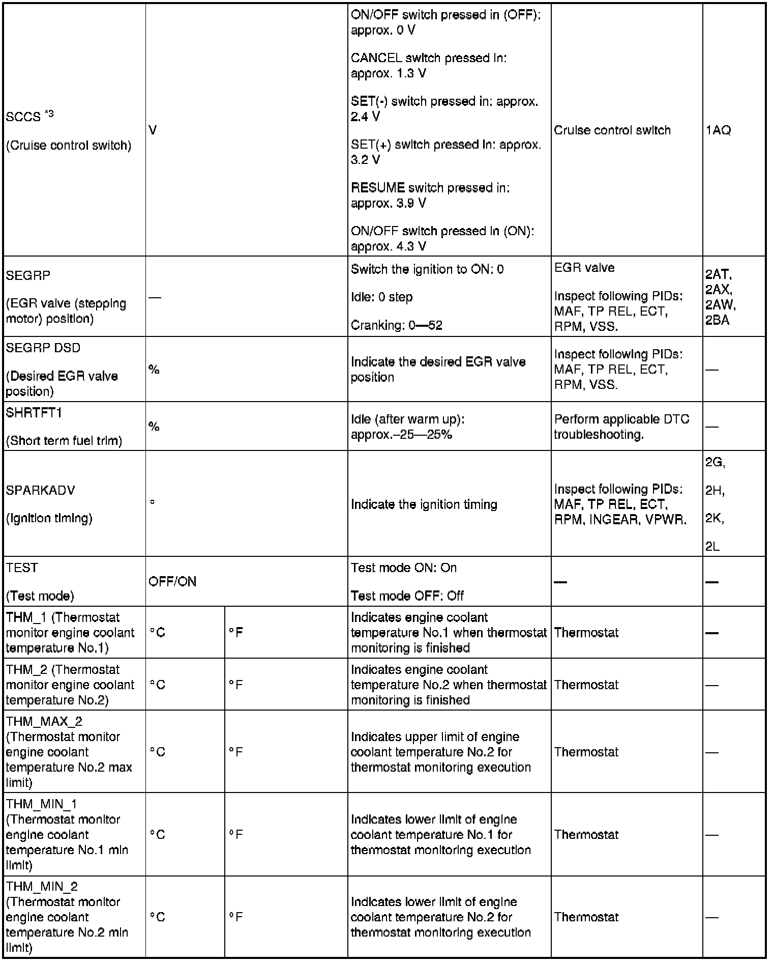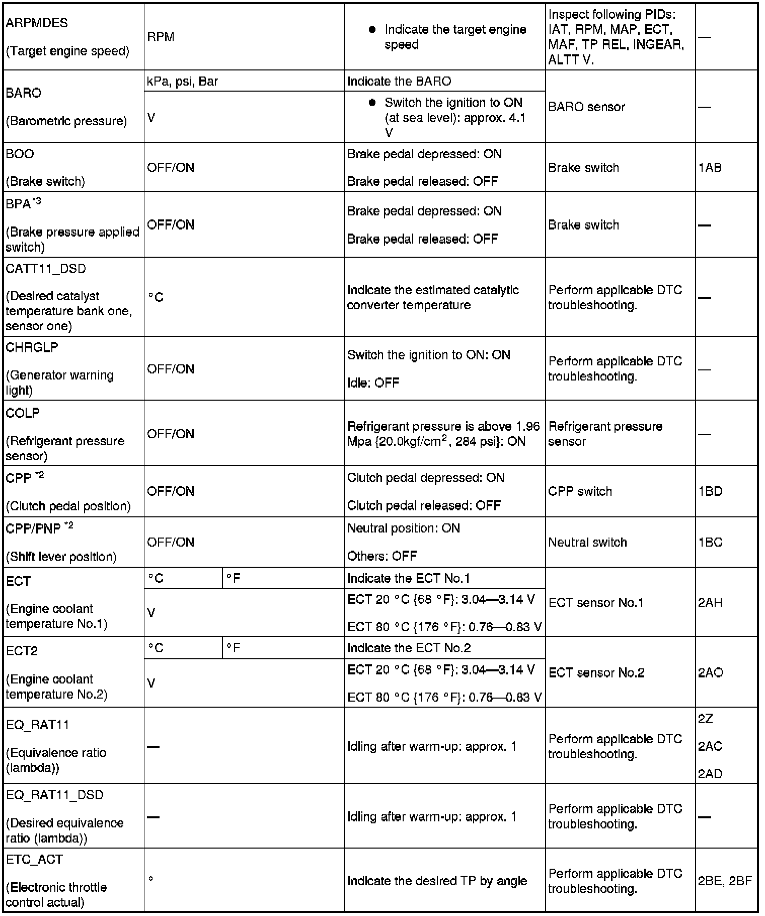 PID/DATA Monitor Table (Reference) (Part 2):