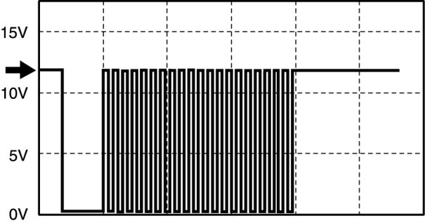 - Oscilloscope setting: 5 V/DIV (Y), 200 ms/DIV (X), DC range