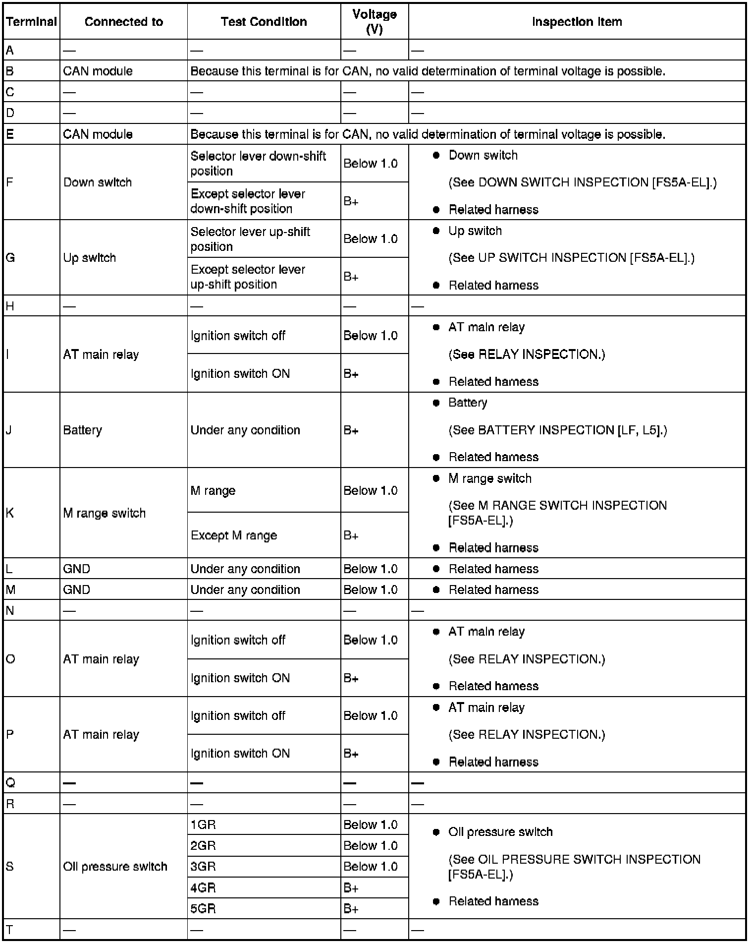 TCM Terminal Voltage (Reference) (Part 2):