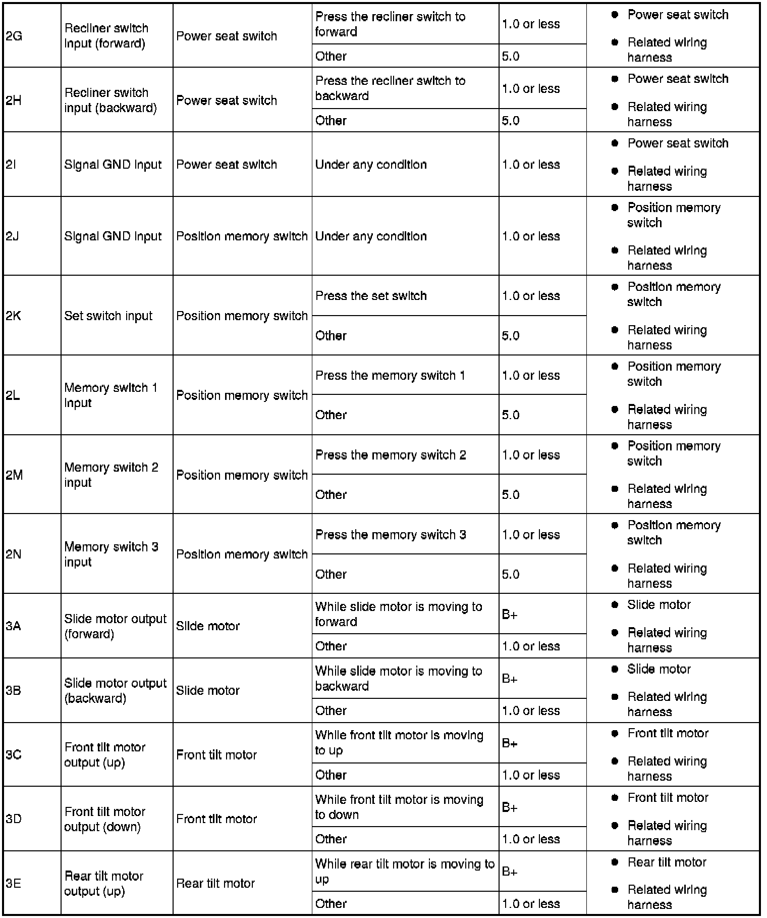 2. If the system does not work properly even though the inspection items or related wiring harnesses do not have any malfunction, replace the position memory control module.