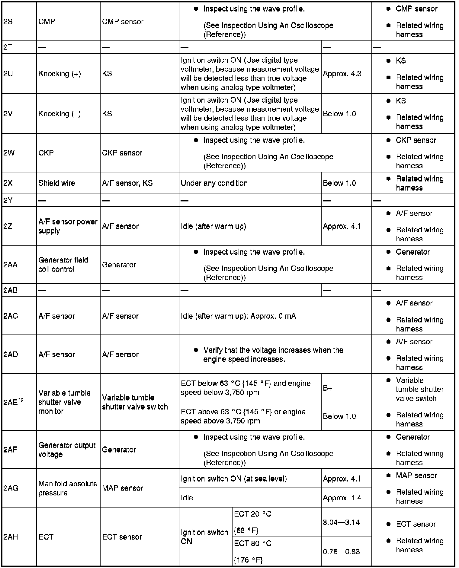 - The PCM terminal voltage can vary with the conditions when measuring and changes due to aged deterioration on the vehicle, causing false diagnosis. Therefore determine comprehensively where the malfunction occurs among the input systems, output systems, and the PCM.