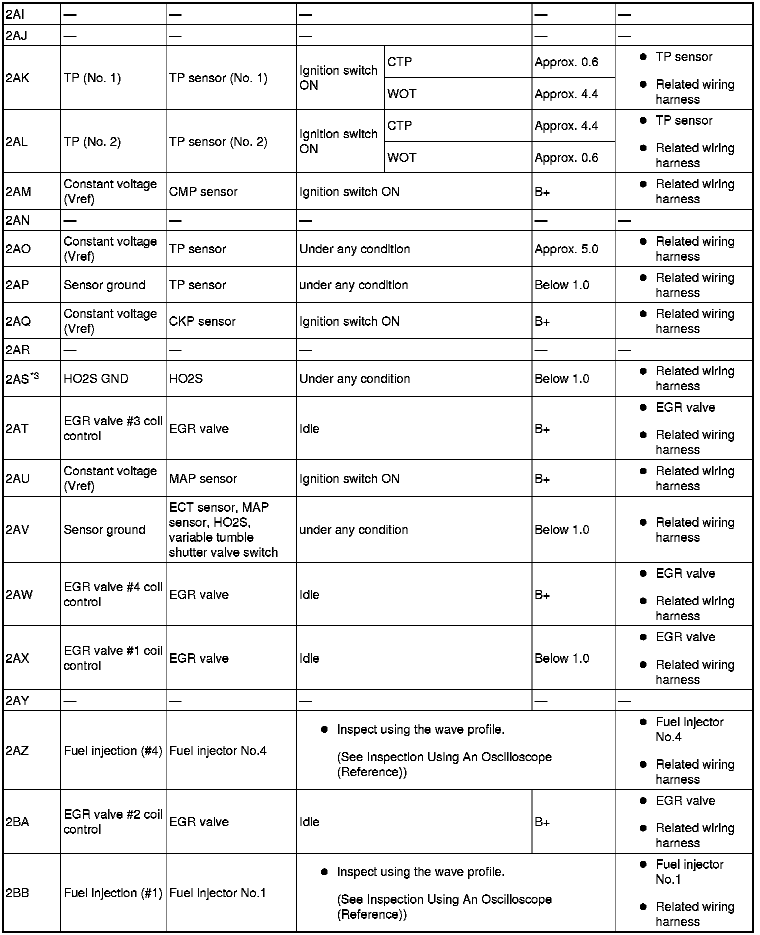 - Fuel Injection No.3: 2BD (+)-body ground (-)