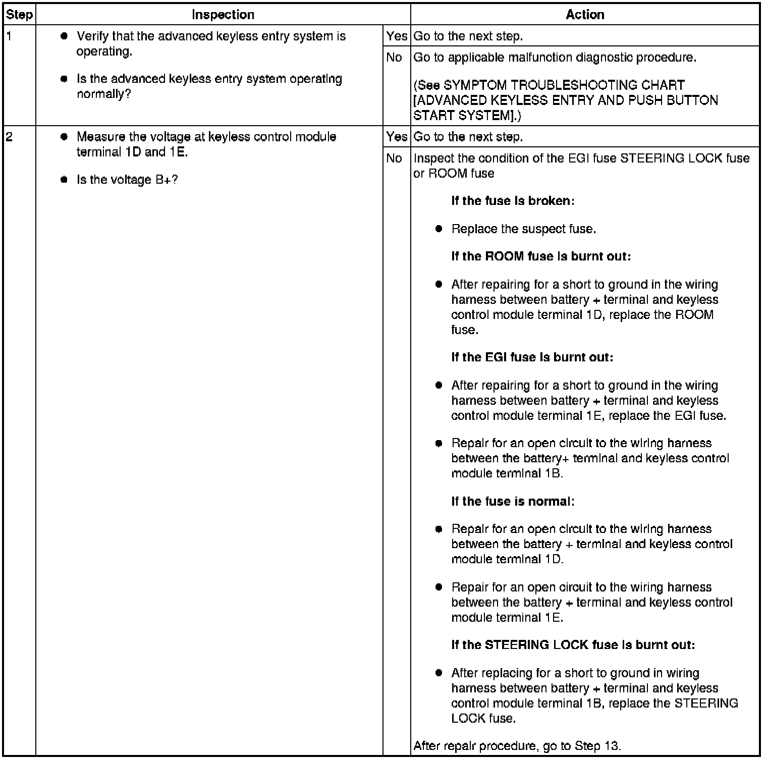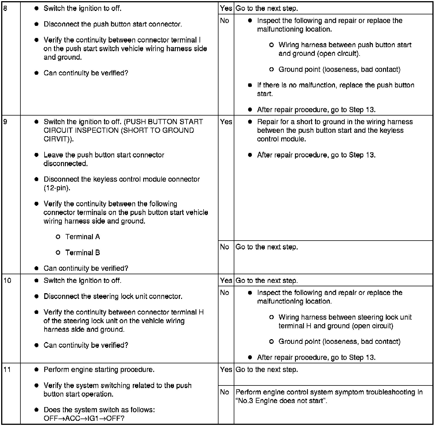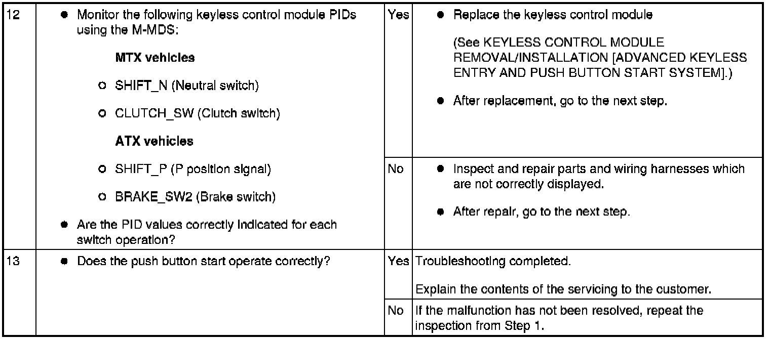 Home >> Mazda >> 2010 >> 6 V6-3.7L >> Repair and Diagnosis >> Accessories and Optional Equipment >> Antitheft and Alarm Systems >> Keyless Entry >> Testing and Inspection >> Symptom Related Diagnostic Procedures >> Advanced Keyless Entry And Push Button Start System >> No.3 Push Button Start System Does Not Operate - Advanced Keyless Entry And Push Button Start System