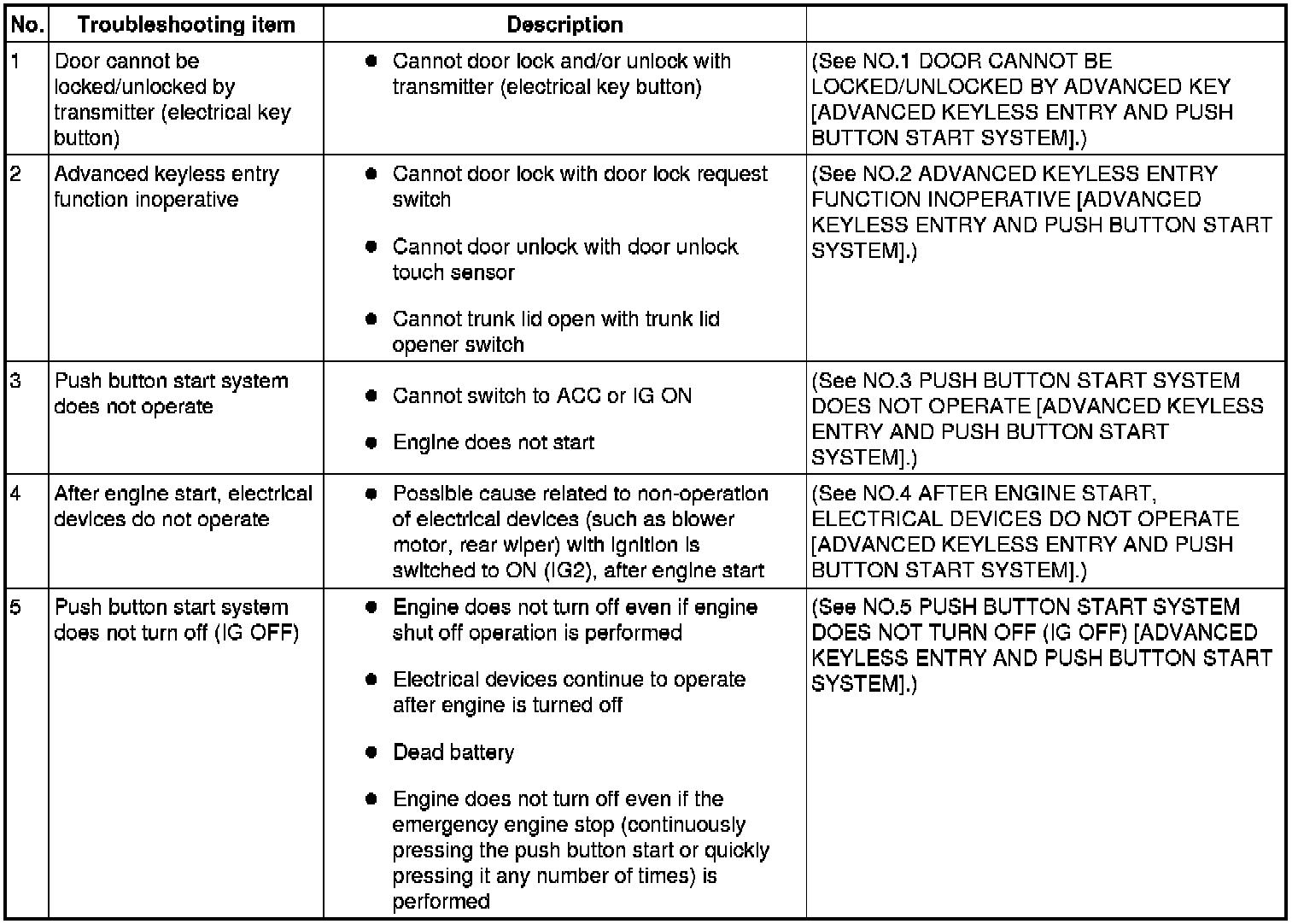 Symptom Troubleshooting Chart - Advanced Keyless Entry And Push Button Start System