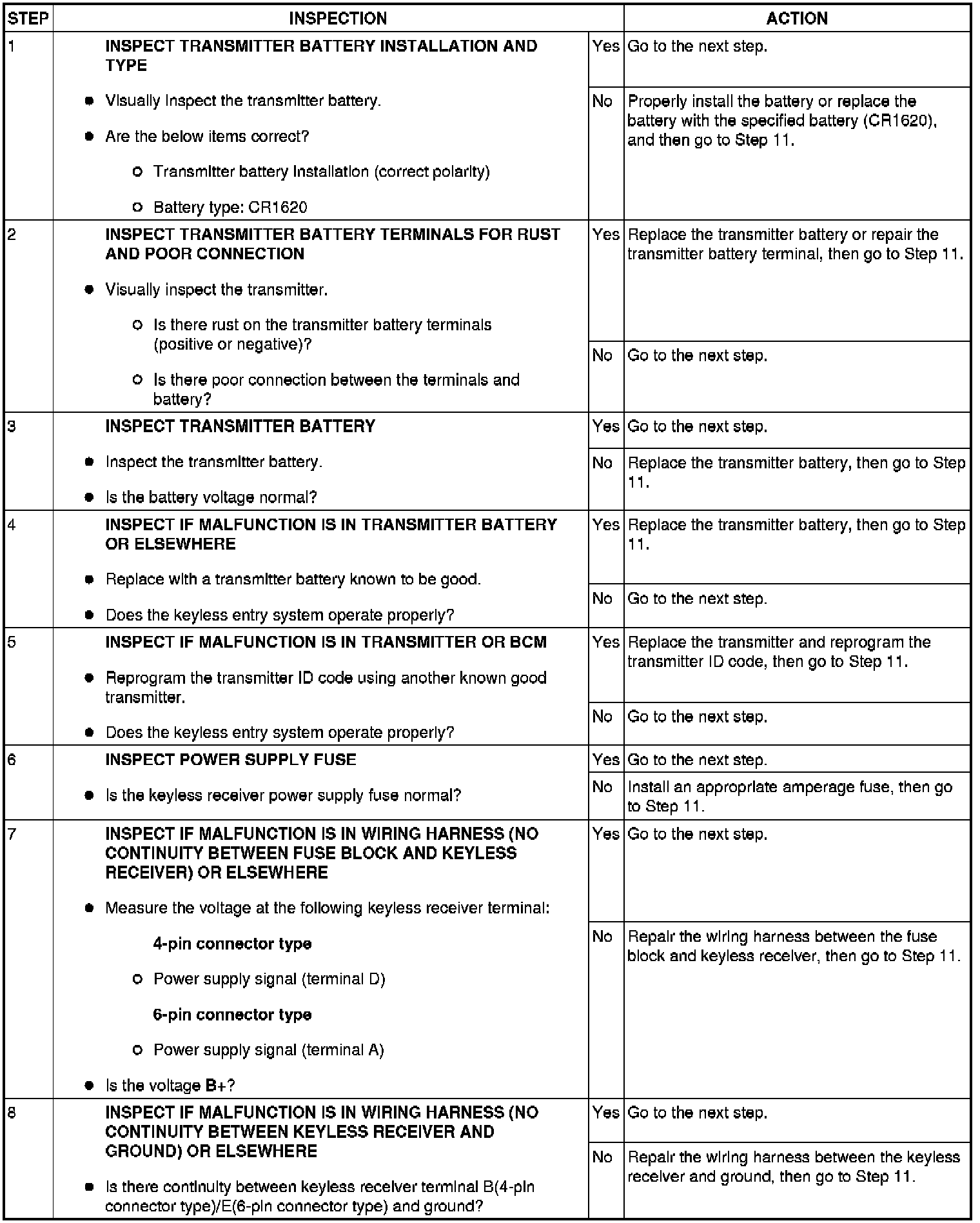 NO.3 TRANSMITTER ID CODE CANNOT BE REPROGRAMMED [KEYLESS ENTRY SYSTEM]