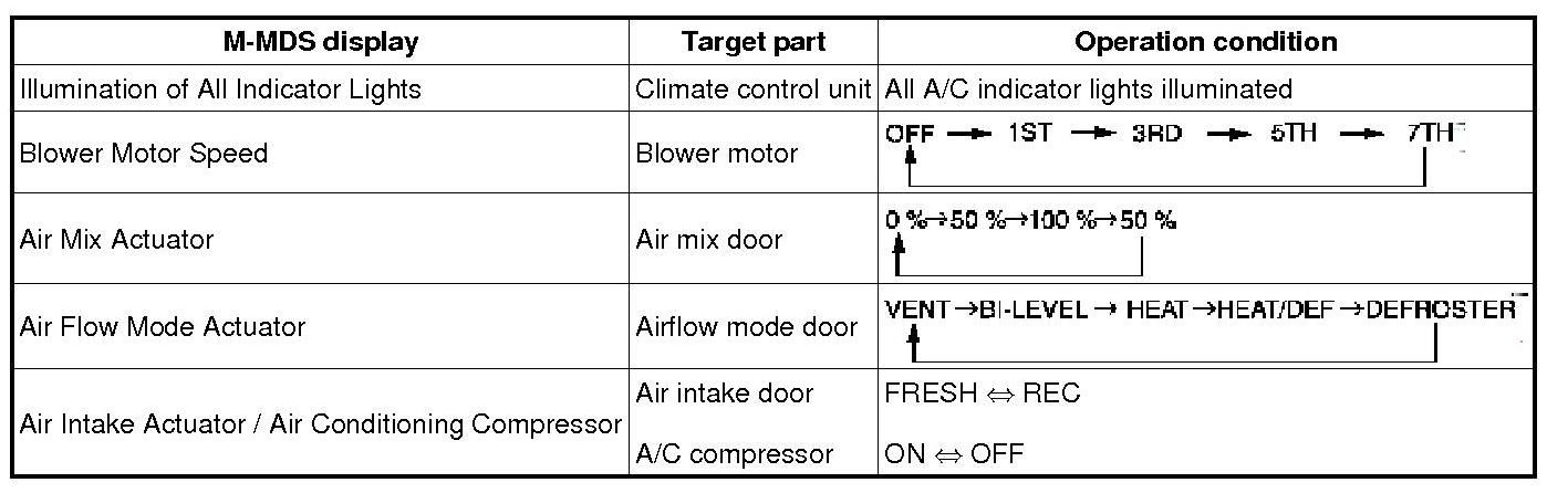 A/C Operation Check Mode Table: