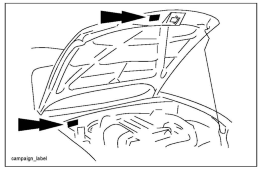 2. Perform a Warranty Vehicle Inquiry using your eMDCS System and inspect the vehicle for a Campaign Label MSP36 attached either to the vehicles bulkhead or to the vehicles hood.