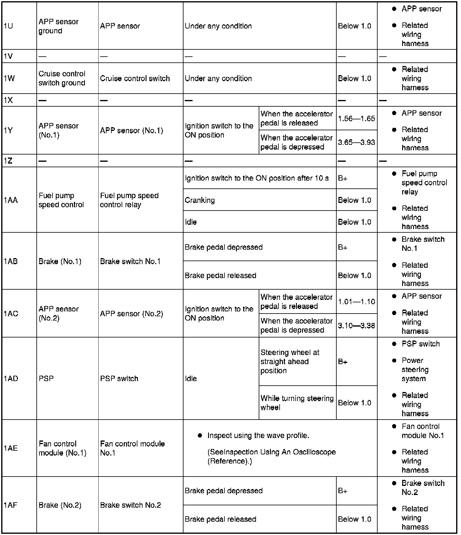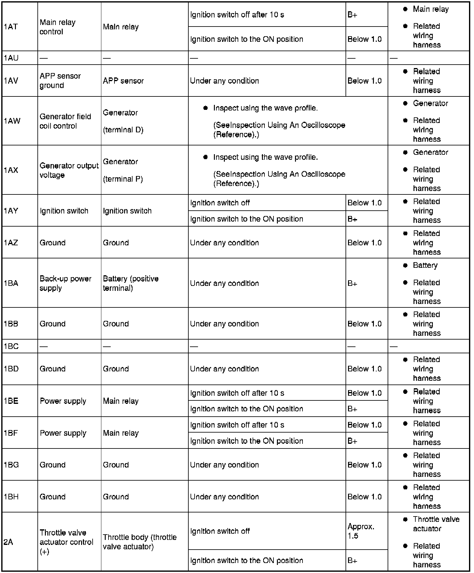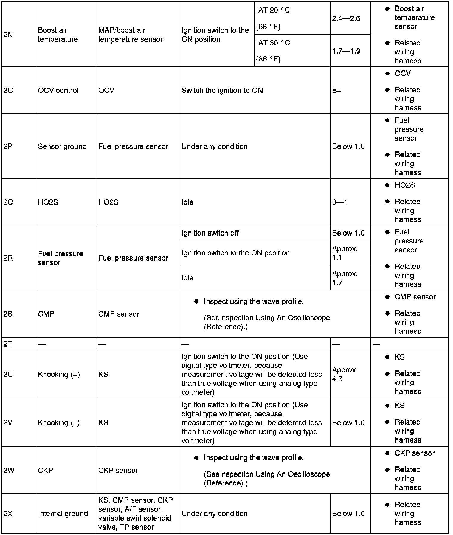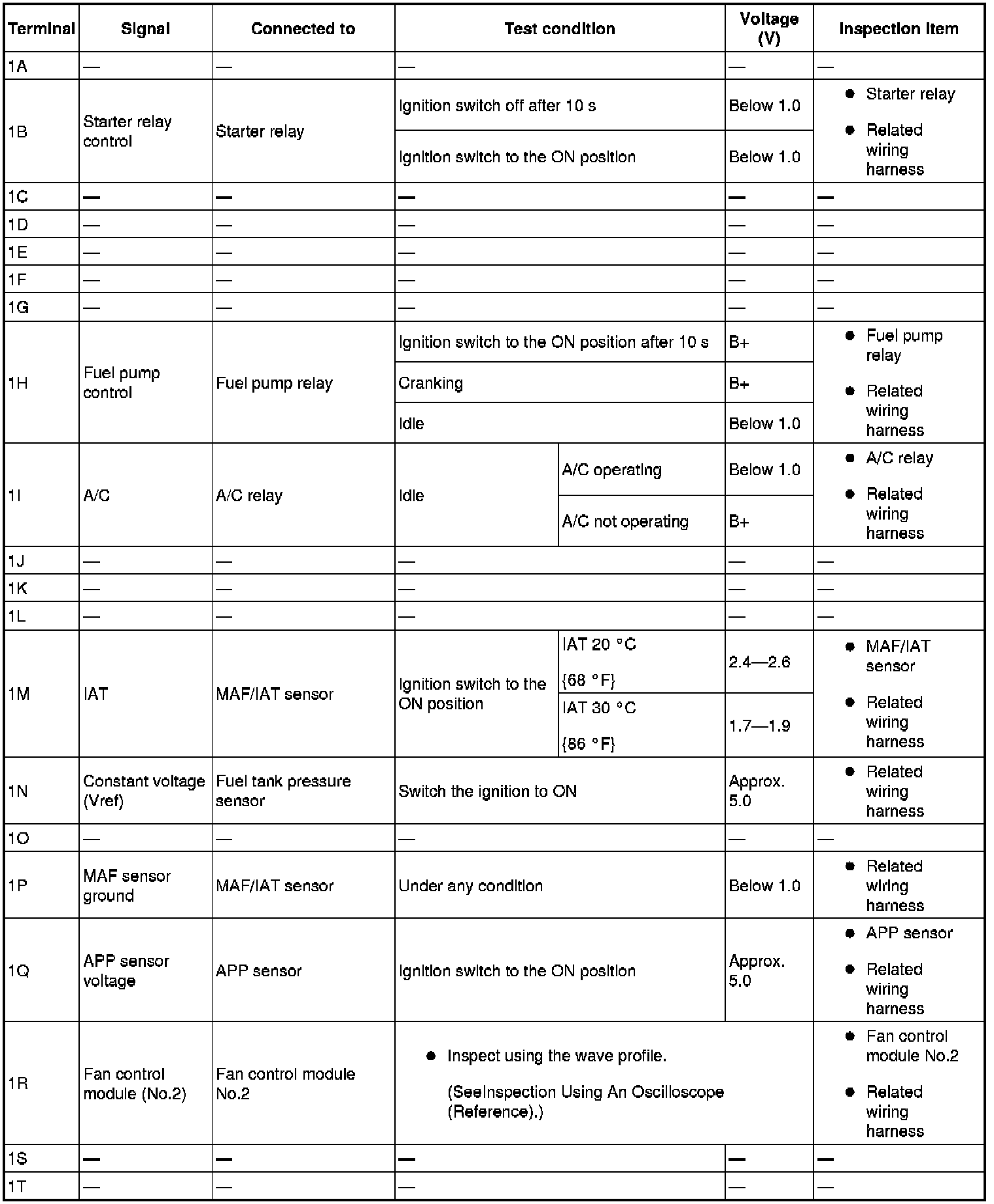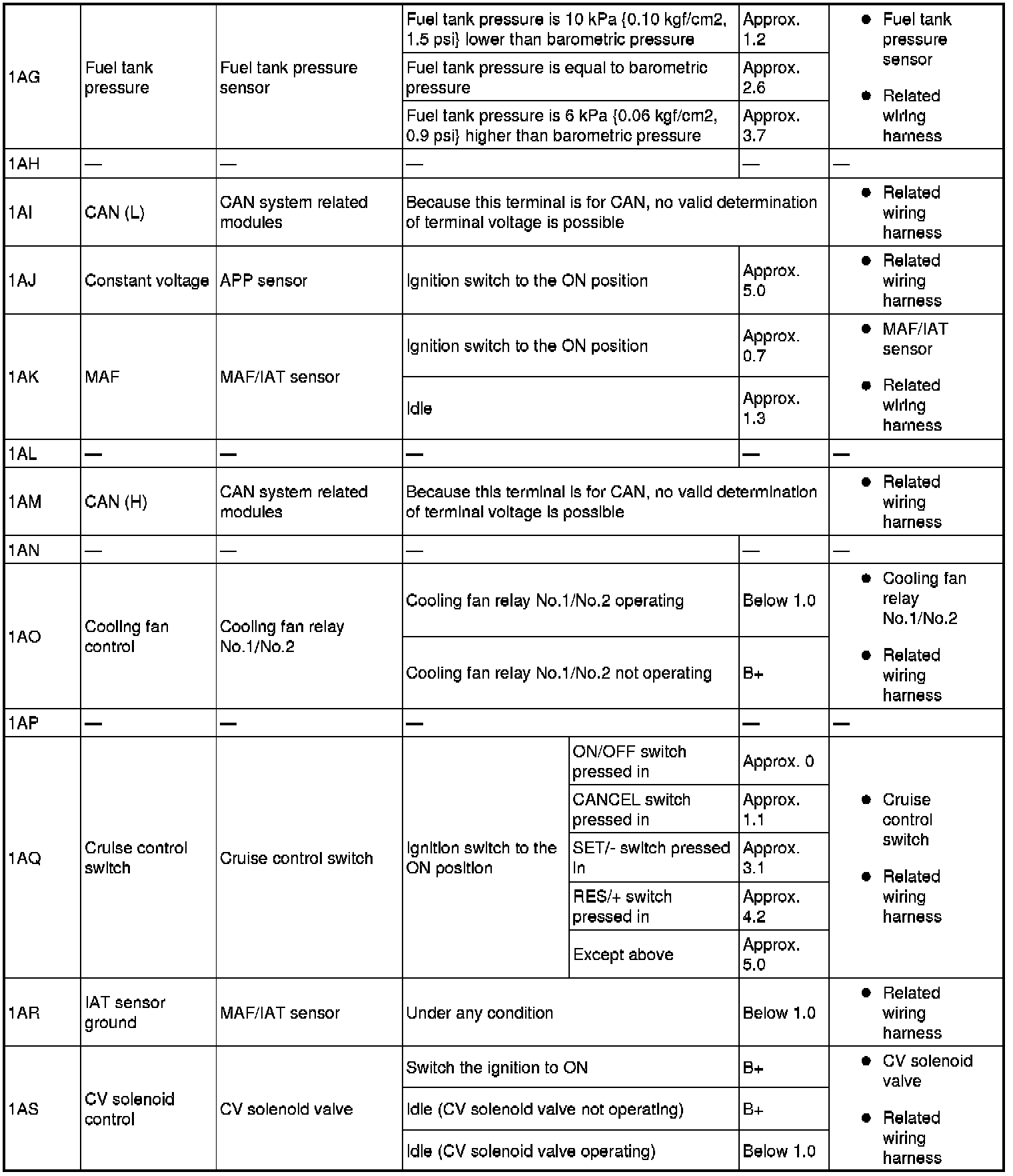 PCM terminal voltage table (Reference)