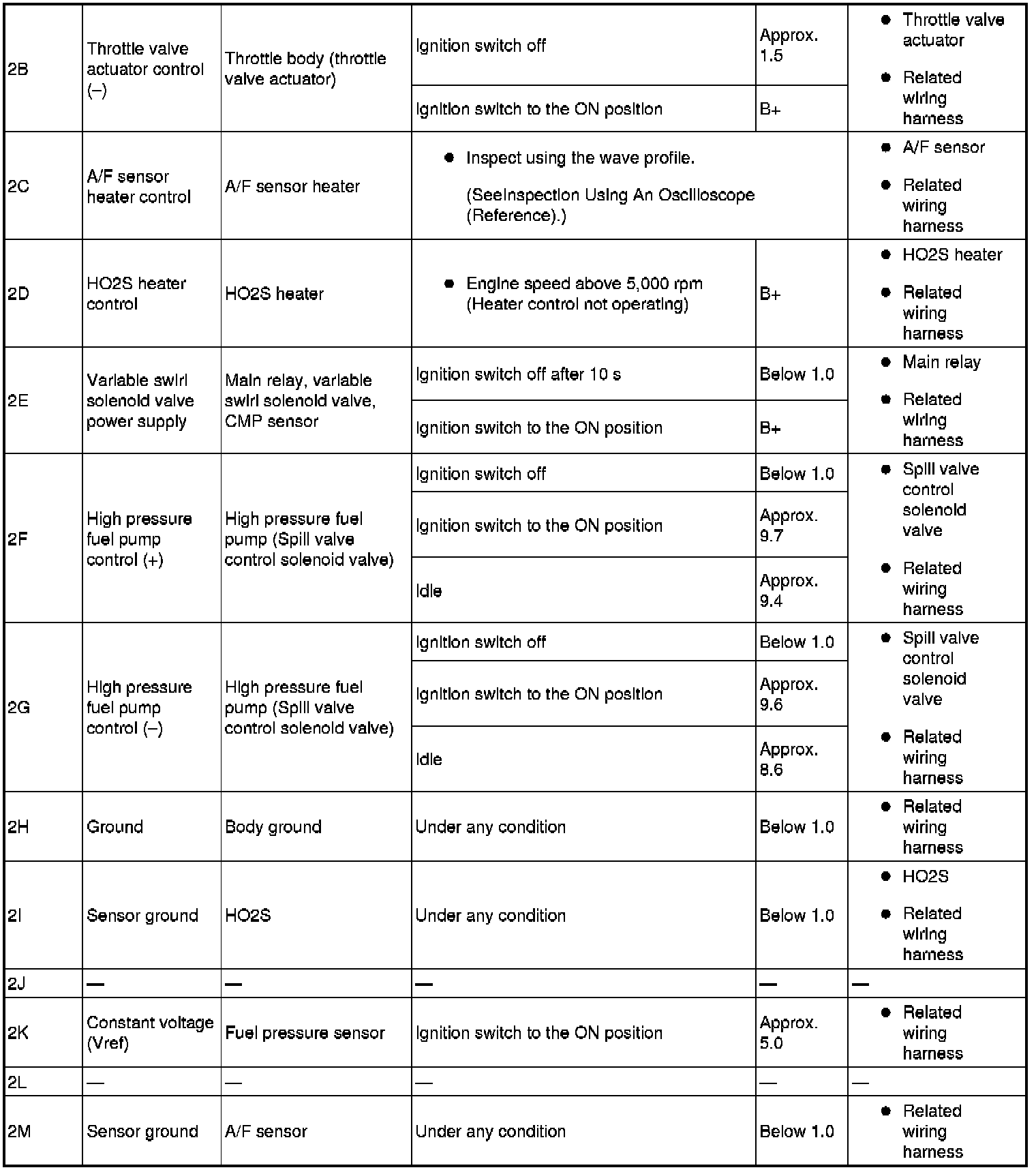 - Fuel injection No.2: 2BC (+)-body ground (-)