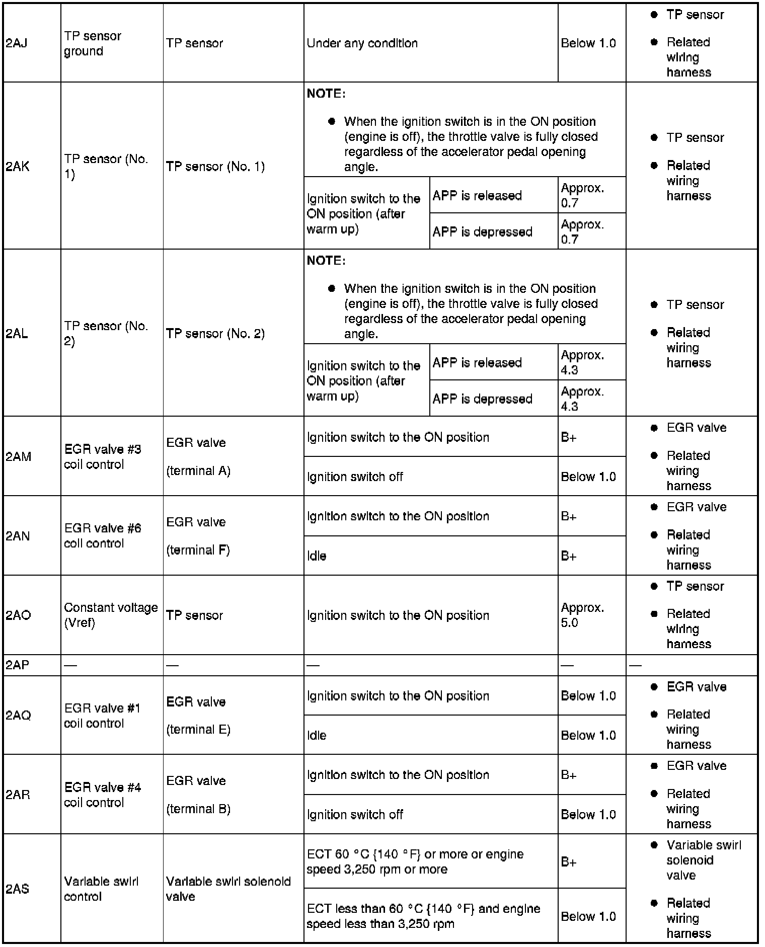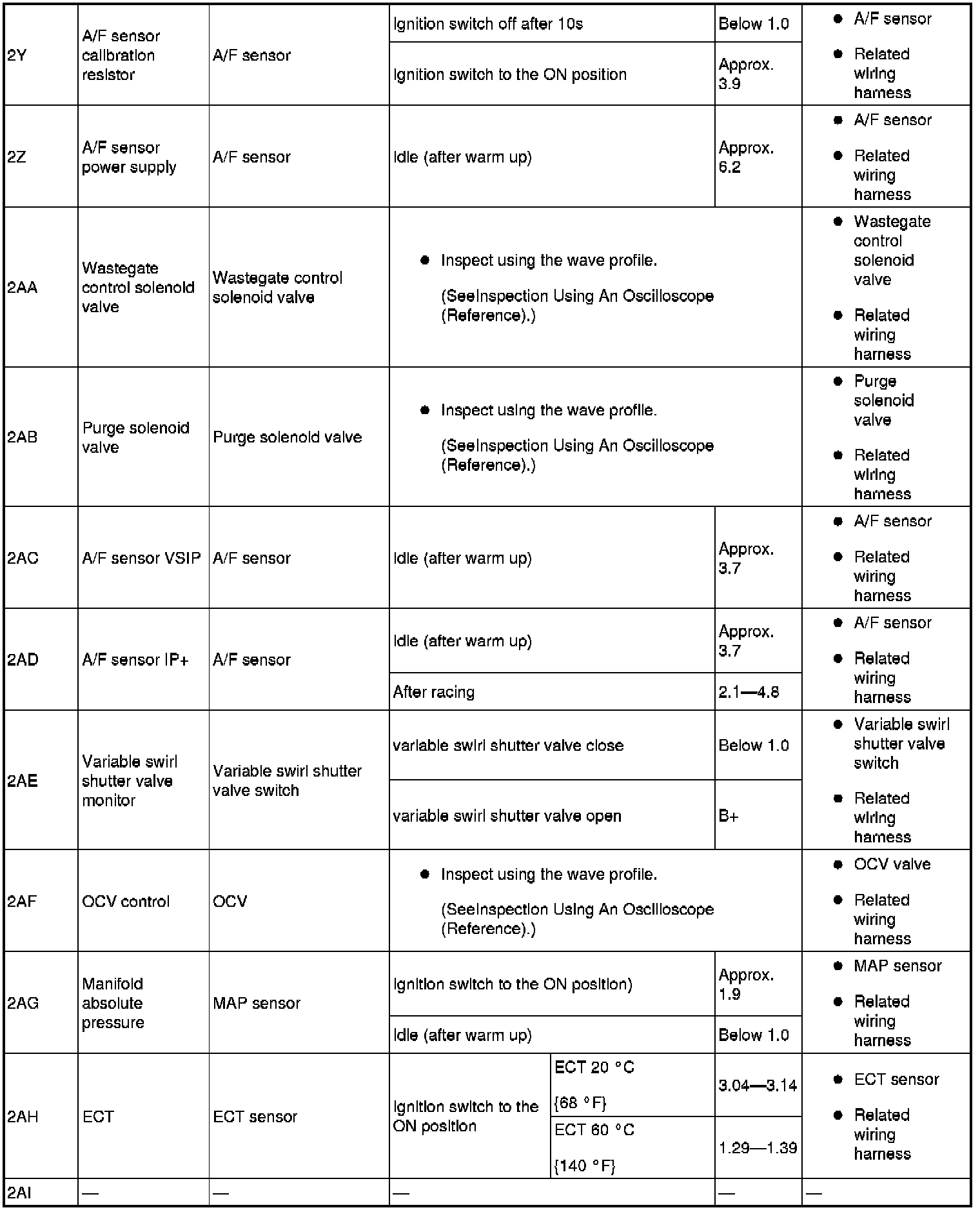 - PIDs for the following parts are not available on this model. Perform the specific inspections for the following parts: