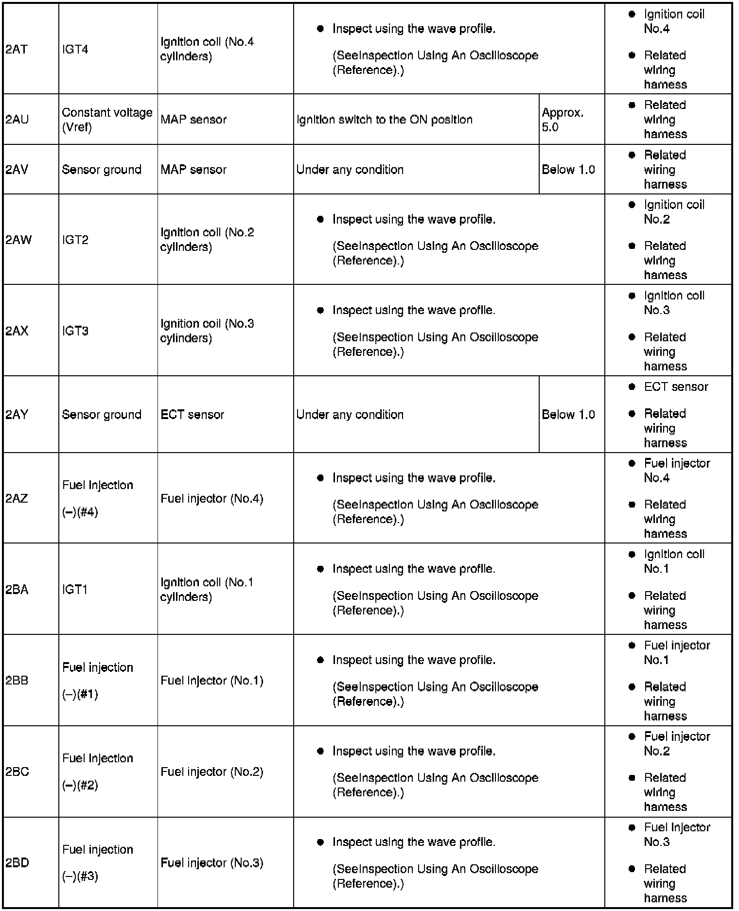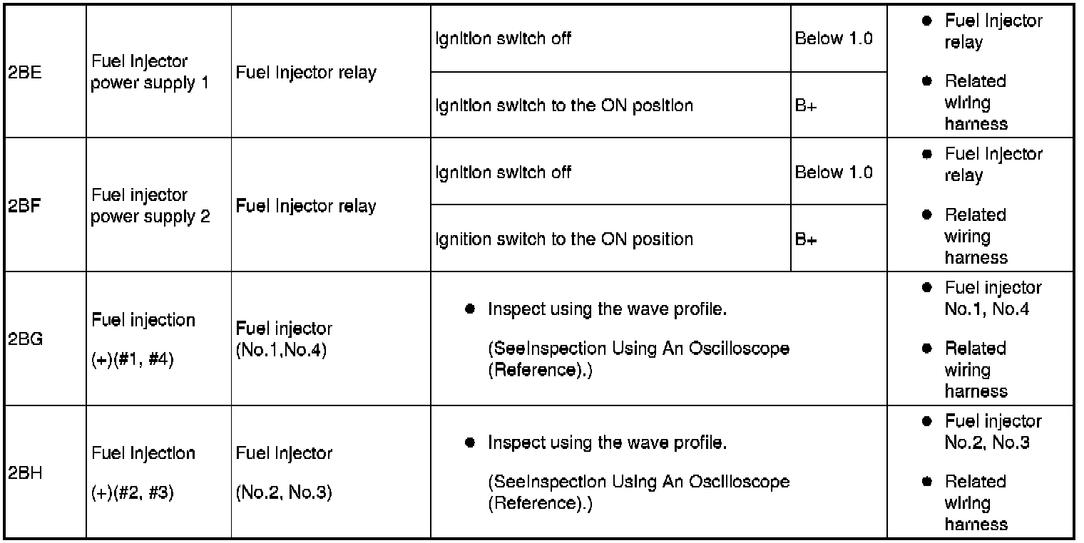 - Fuel injection No.1, No.4: 2BG (+)-body ground (-)