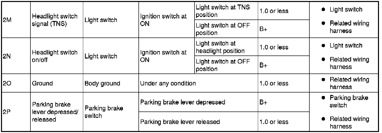 3. Measure the voltage at the auto light/wiper control module terminals as indicated below.