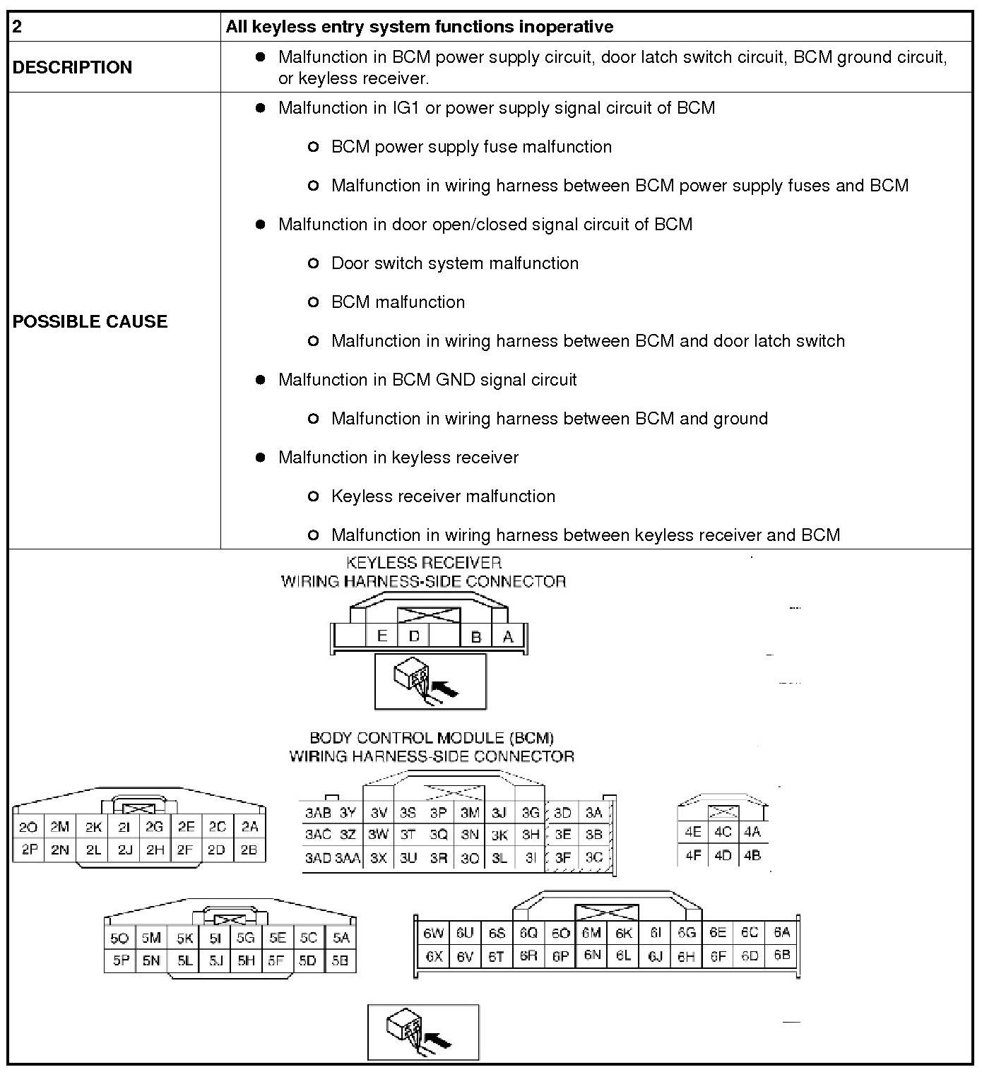 Home >> Mazda >> 2010 >> CX-9 AWD V6-3.7L >> Repair and Diagnosis >> Accessories and Optional Equipment >> Antitheft and Alarm Systems >> Keyless Entry >> Testing and Inspection >> Symptom Related Diagnostic Procedures >> Keyless Entry System >> No.2 All Keyless Entry System Functions Inoperative - Keyless Entry System
