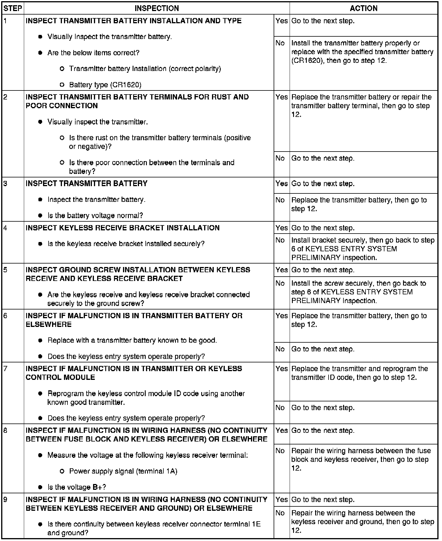No.3 Transmitter ID Code Cannot Be Reprogrammed - Keyless Entry System