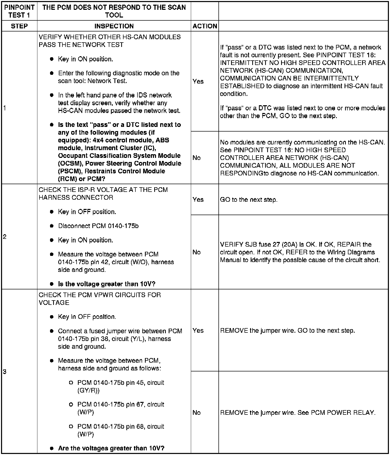 Pinpoint Test 1: The PCM Does Not Respond To The Scan Tool
