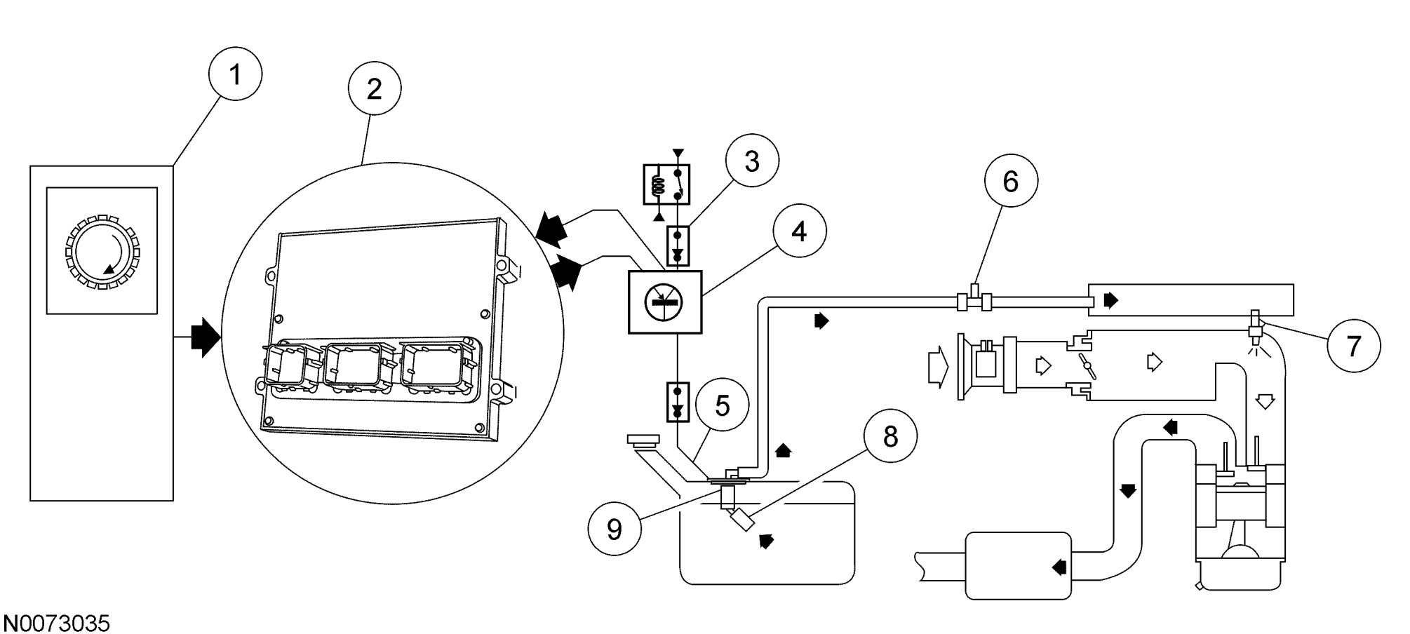 4. The PCM commands a duty cycle to the fuel pump control module. The fuel pump control module reports diagnostic information to the PCM.