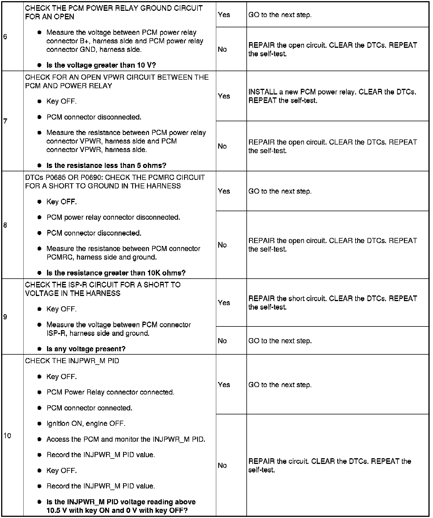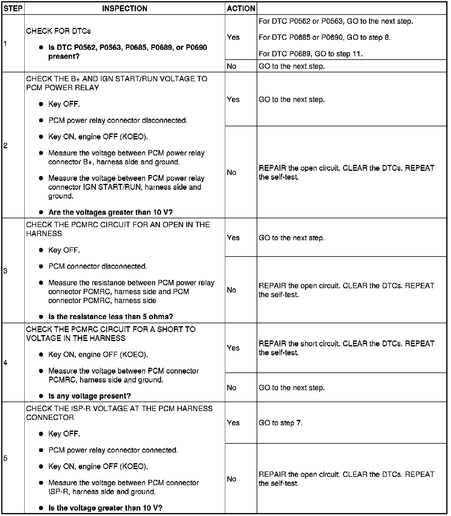 - Harness circuits: B+, IGN START/RUN, INJPWRM, ISP-R, PCMRC, VPWR and GND