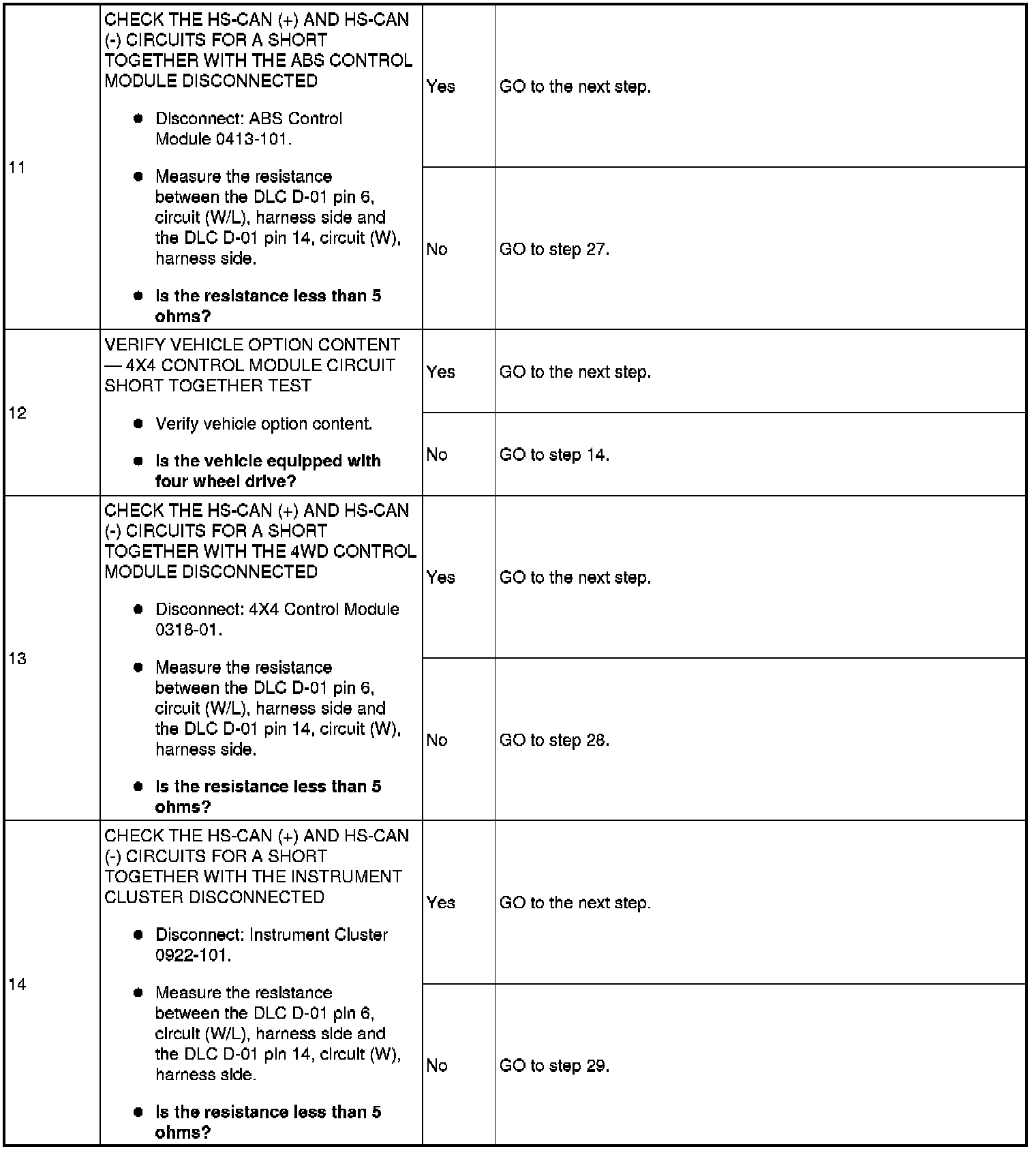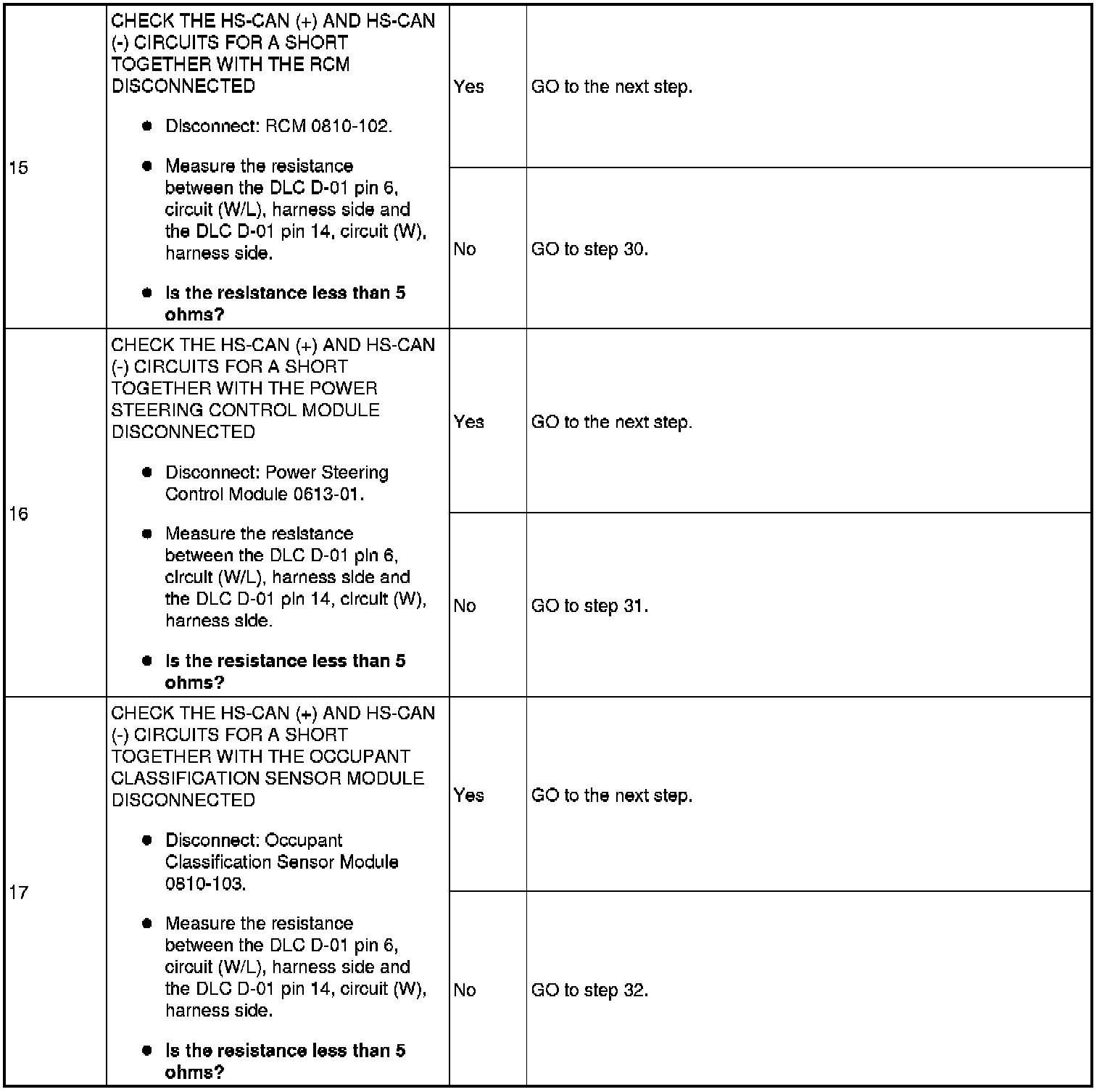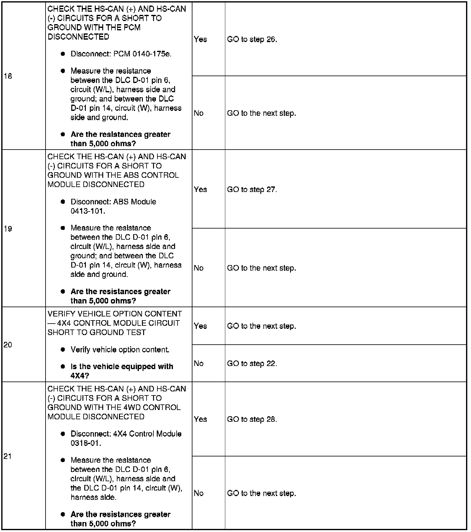 Pinpoint Test 16: No High Speed Controller Area Network (HS-CAN) Communication, All Modules Are Not Responding