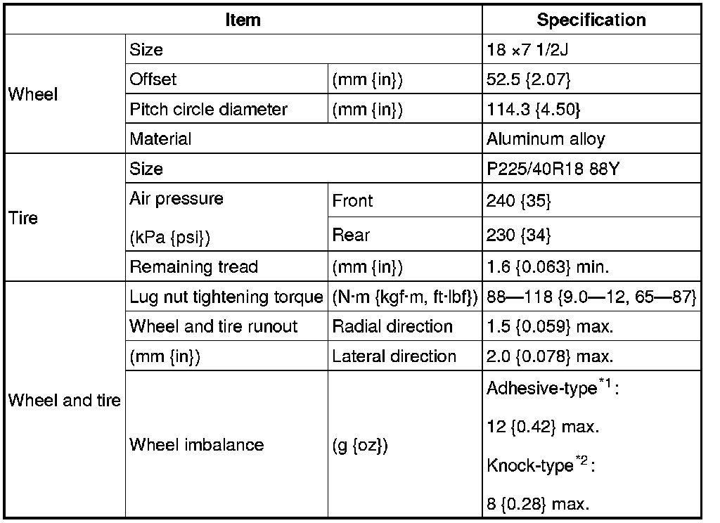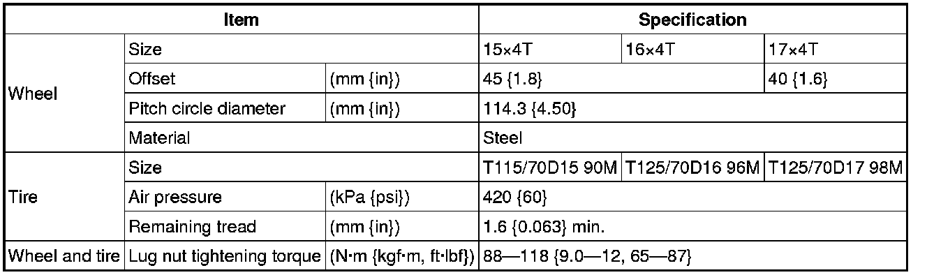WHEEL AND TIRE SPECIFICATION