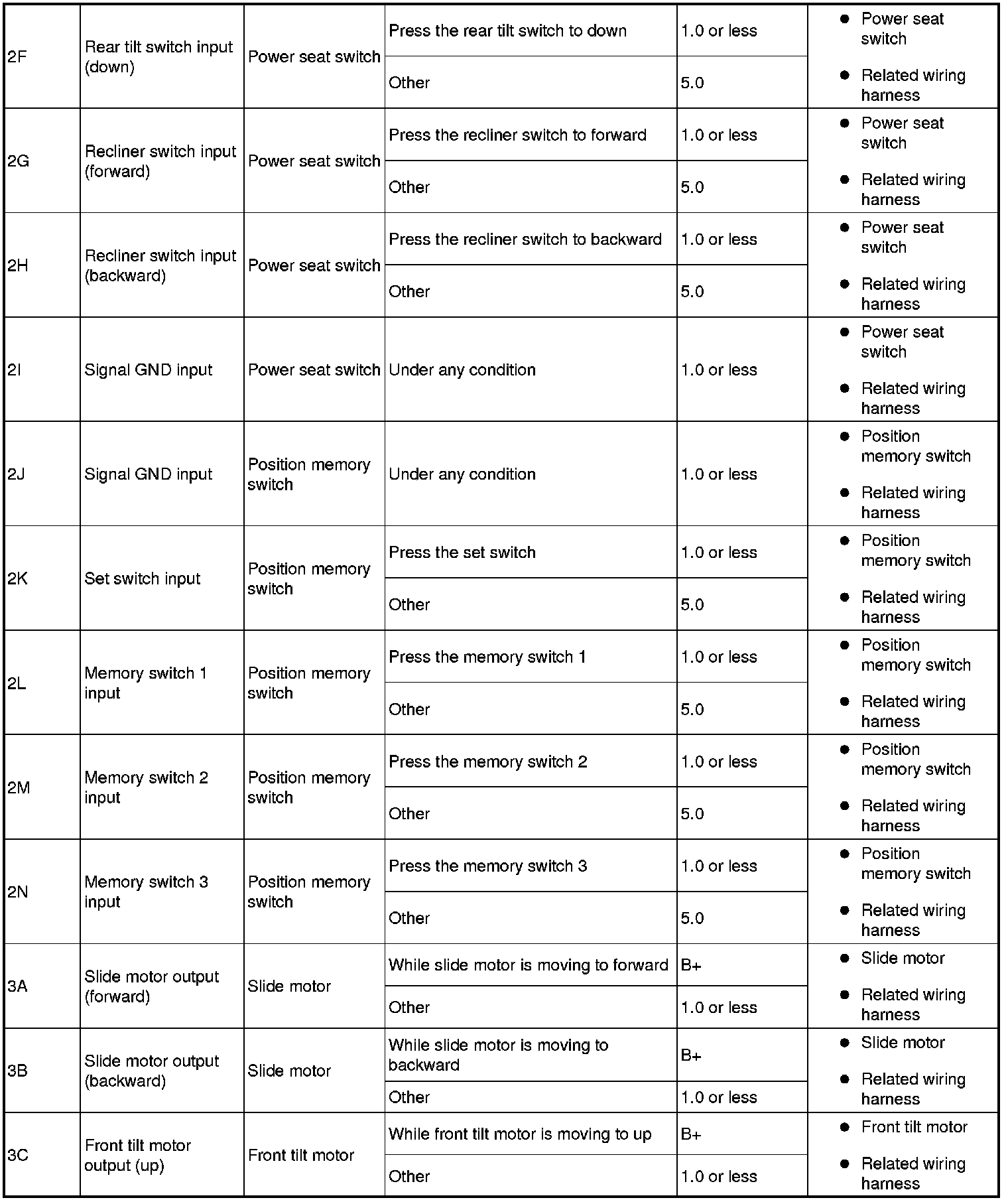 2. If the system does not work properly even though the inspection items or related wiring harnesses do not have any malfunction, replace the position memory control module.