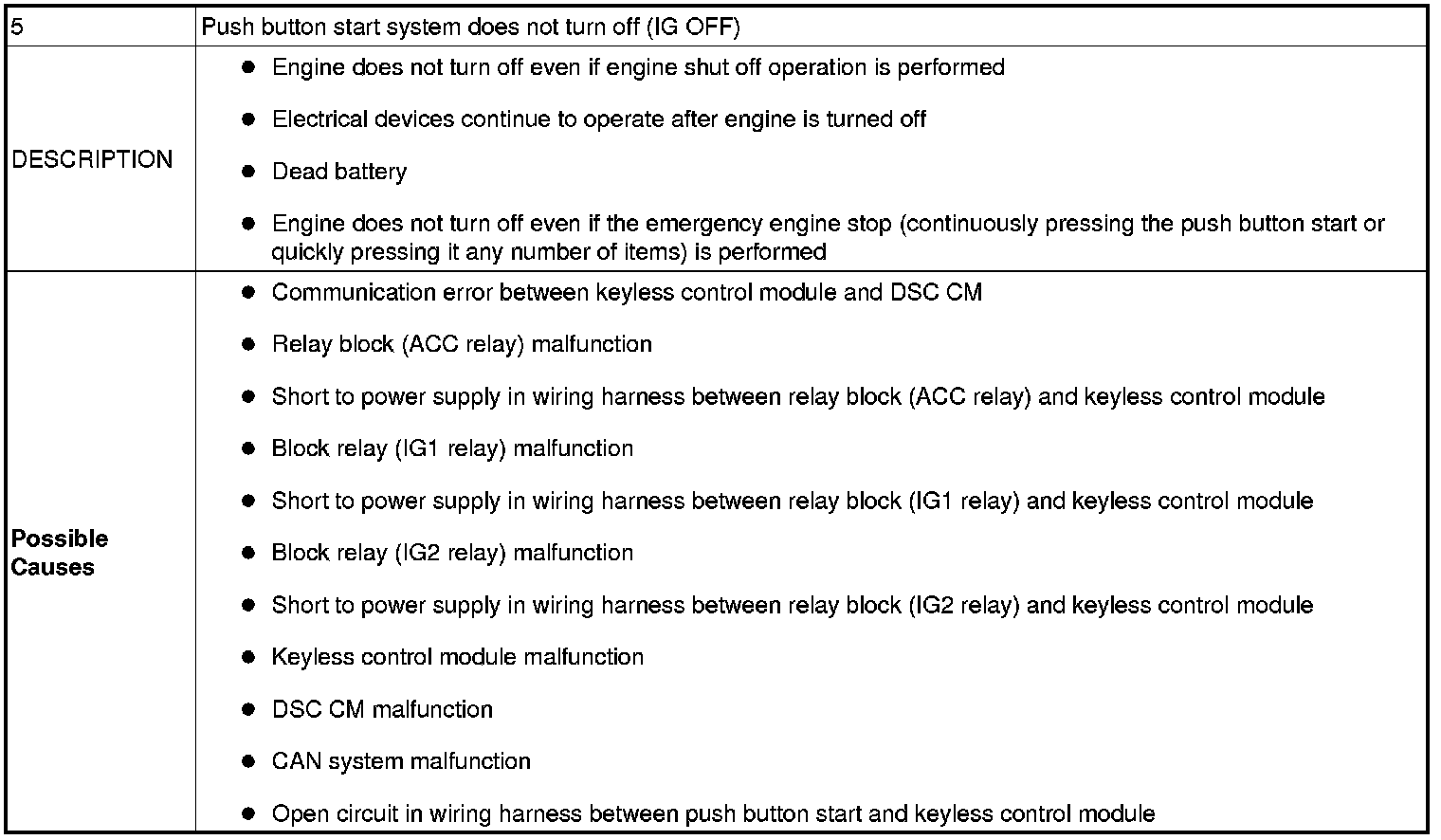 No. 5 Push Button Start System Does Not Turn Off (IG Off) - Advanced Keyless Entry And Push Button Start System
