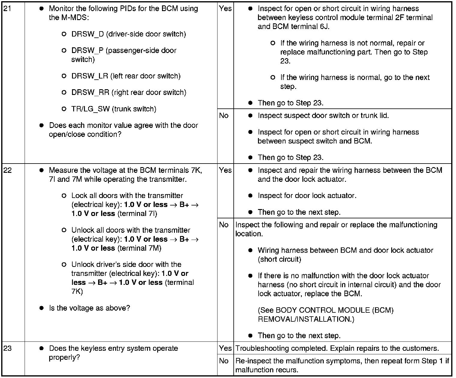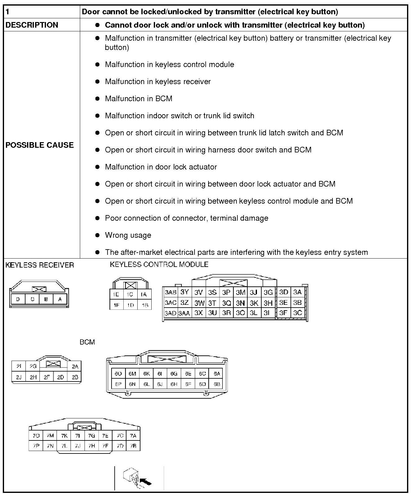 No. 1 Door Cannot Be Locked/Unlocked By Advanced Key - Advanced Keyless Entry And Push Button Start System